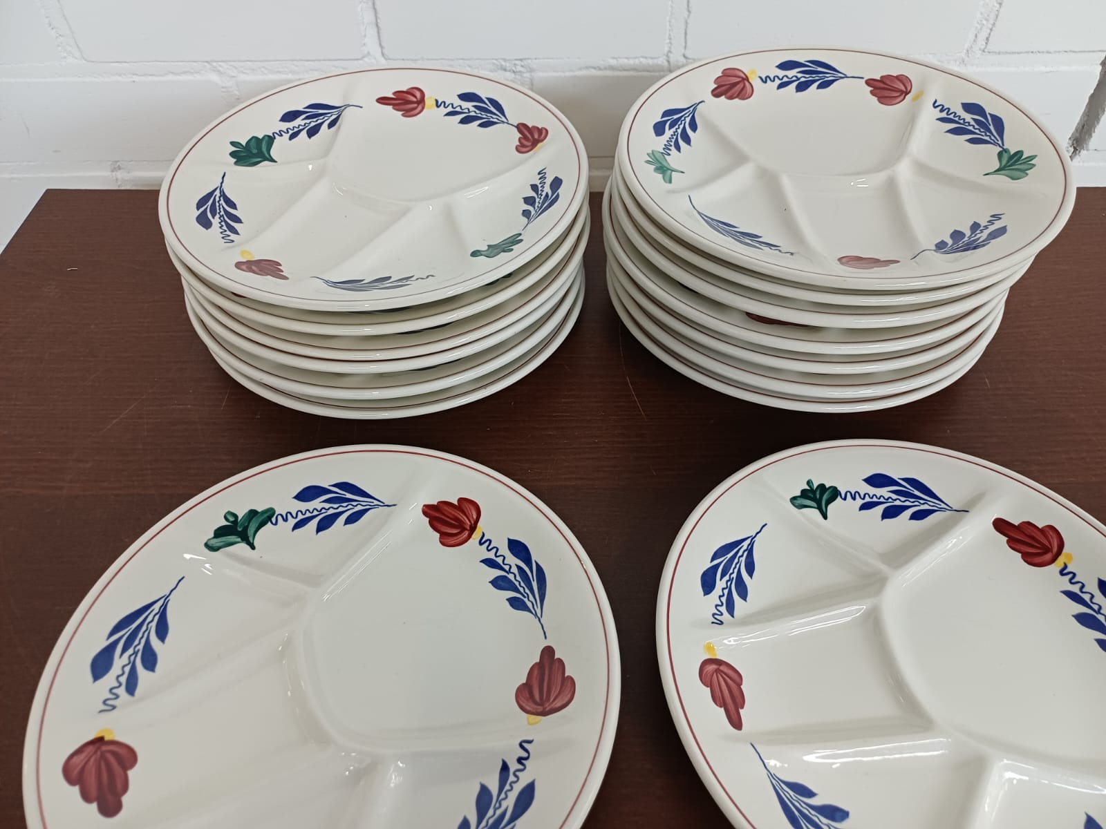 12 kleine bordjes (gebaksbordjes) doorsnede: 16,5 (bij 1 kleine beschadiging)