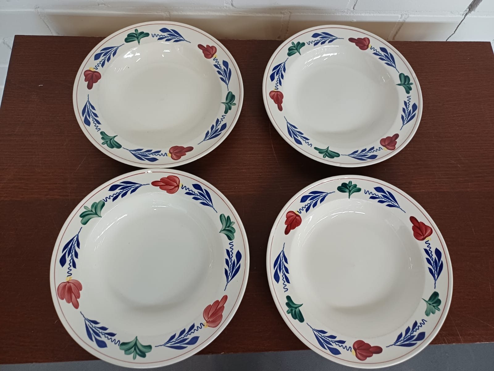 4 soepborden – doorsnede: 24,5 cm / hoog: 3,5 cm (bij 2 kleine beschadiging)