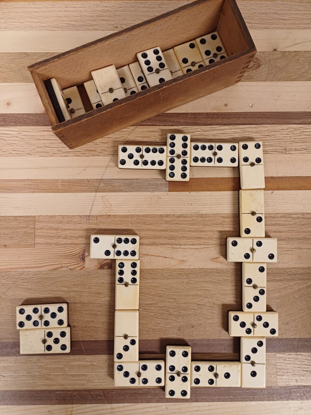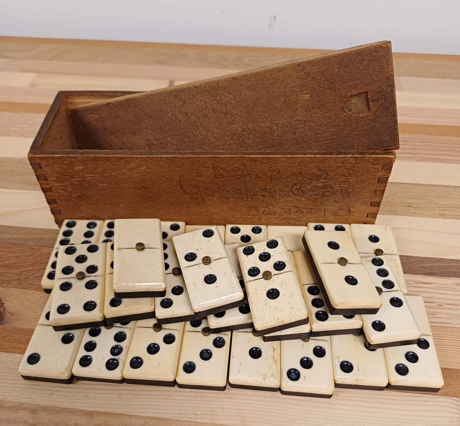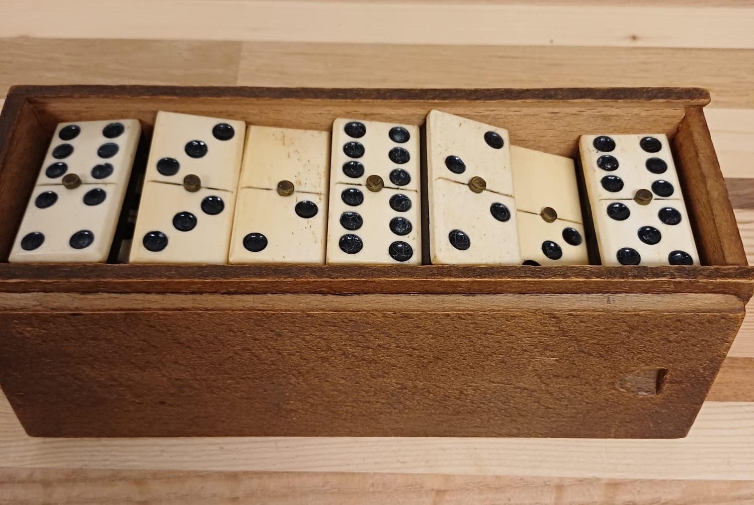 Antieke Domino Set uit 1900 in Houten Doos – Ebbenhout