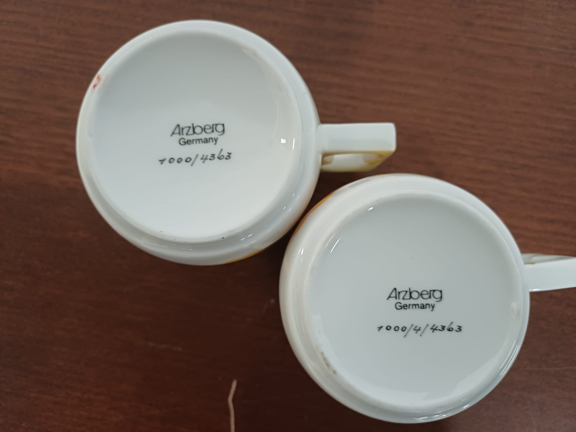 Arzberg retro servies met bloemen en oranje accenten – 11 delig