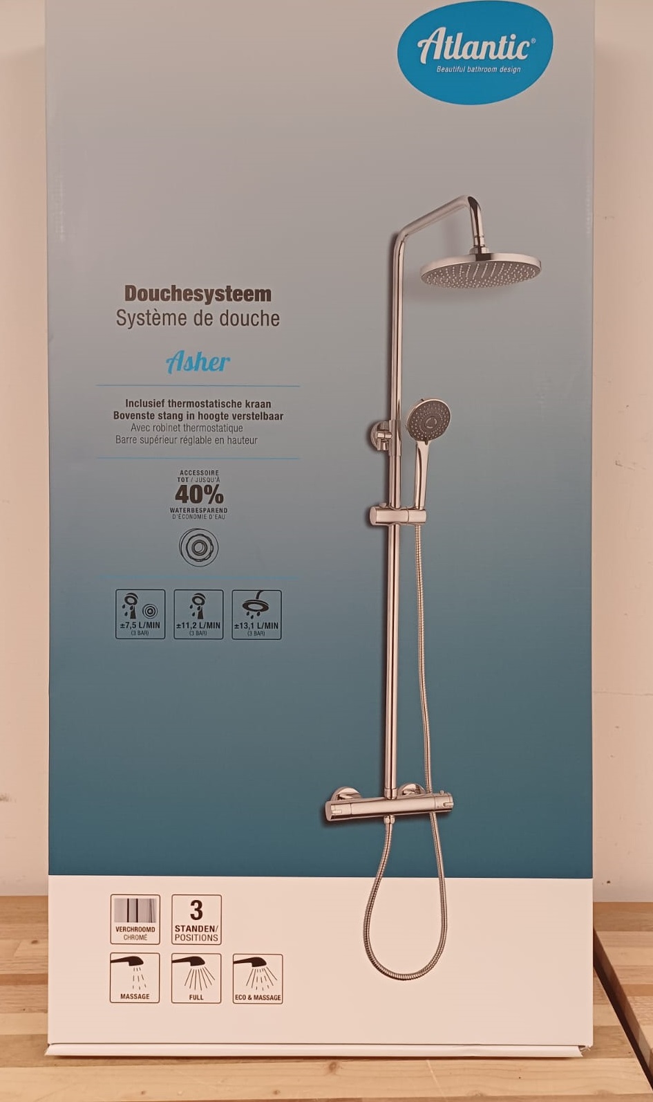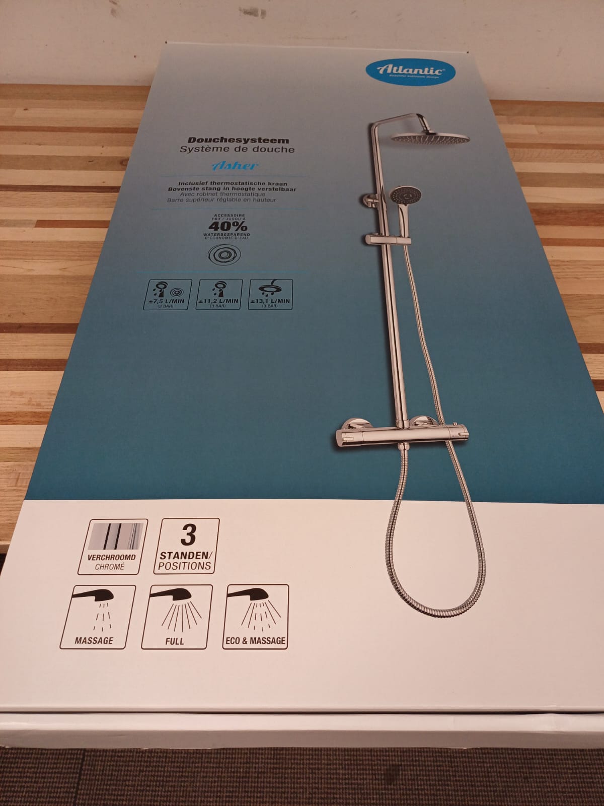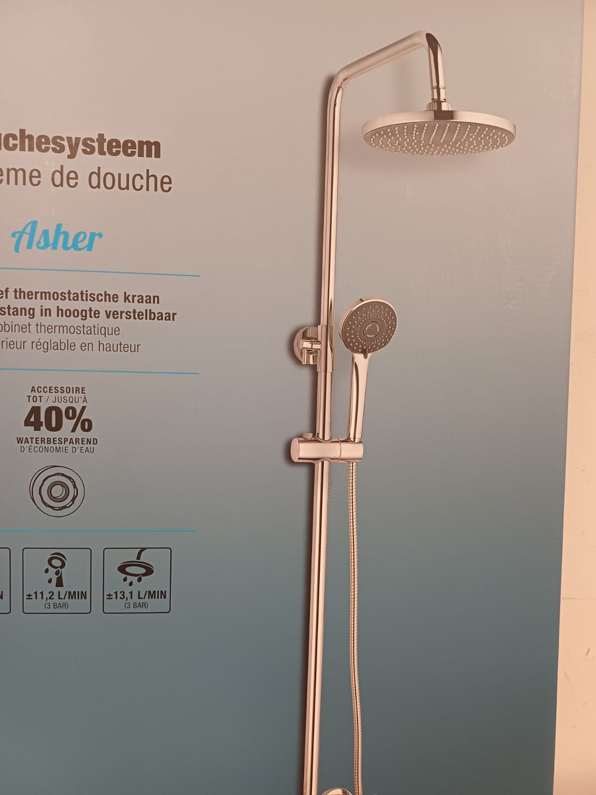 Complete regendoucheset met vaste hoofddouchekop + handdouche + thermostaatkraan.