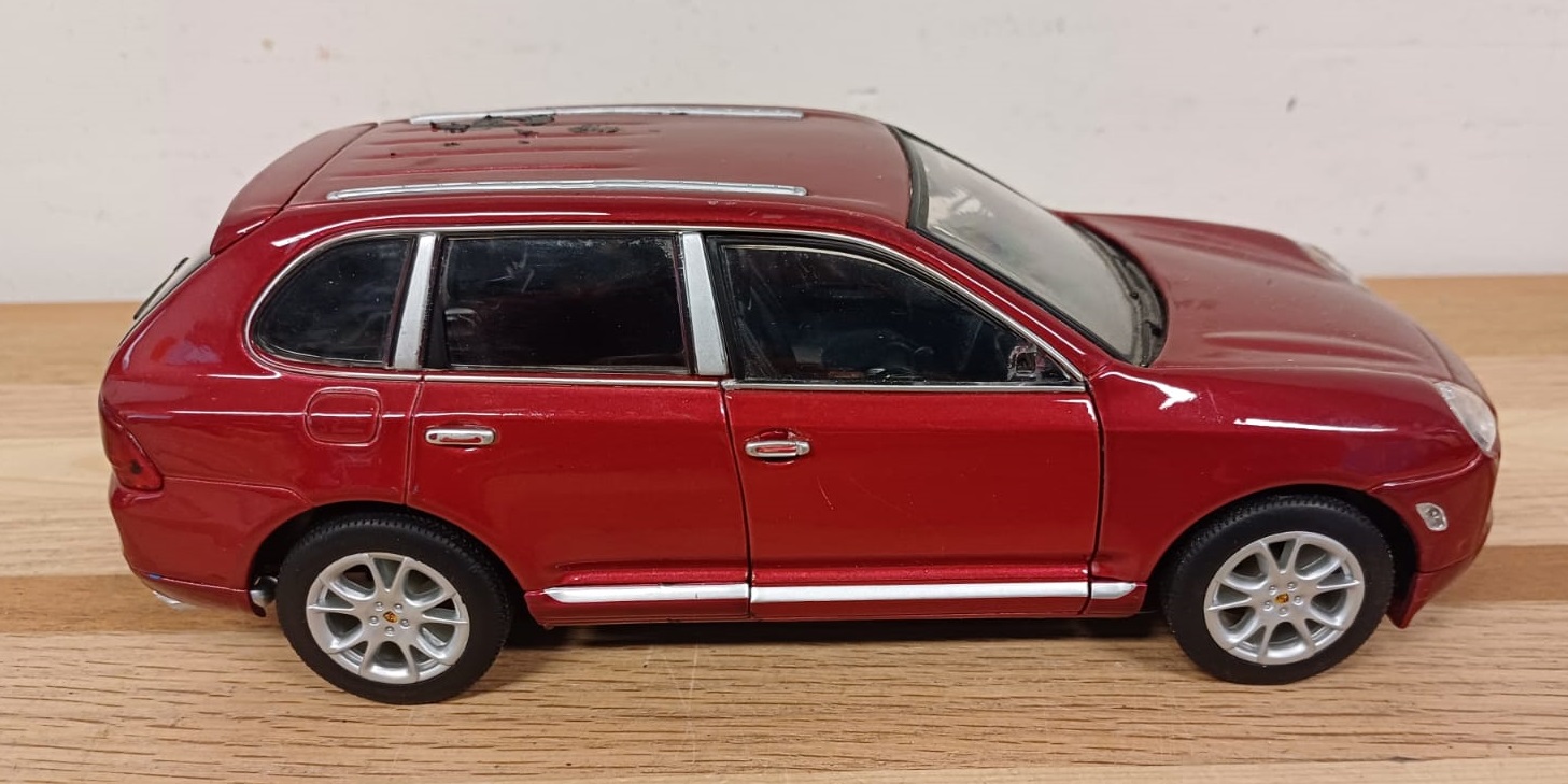 Bestaande uit:Bburago Porsche 356 B (1961) (1/18)BMW Z3 (1/18)Welly Porsche Cayenne Turbo (1/24)