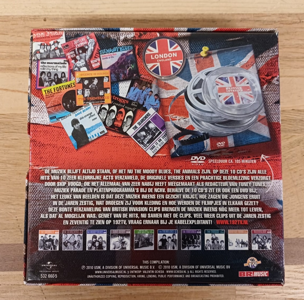 Complete boxset van British Invasion met 10 CD’s en een DVD. Bevat hits van The Searchers, The Animals, The Moody Blues en vele andere artiesten. Een must-have voor liefhebbers van Britse popmuziek uit de jaren ’60. Inclusief unieke video clips.