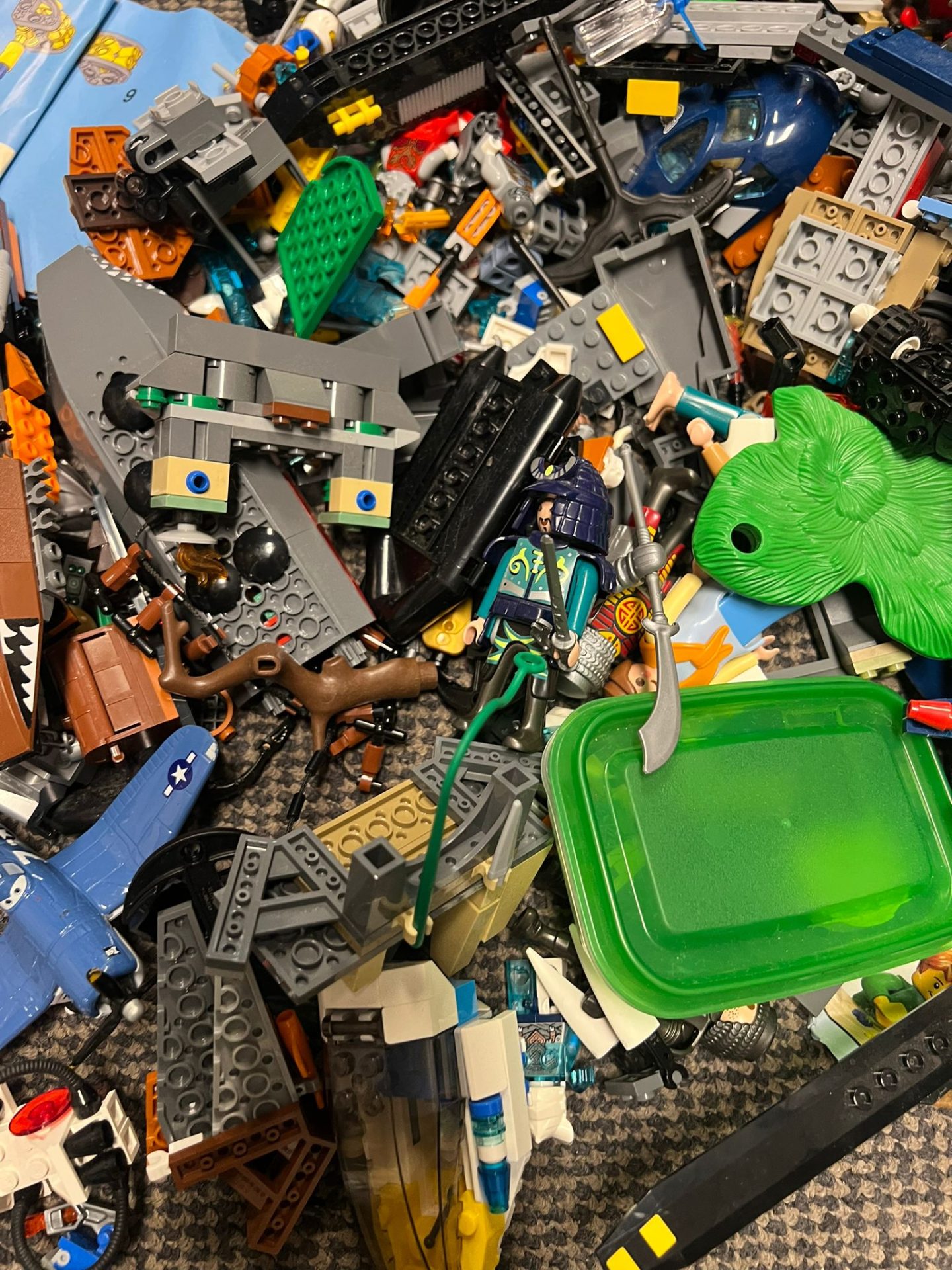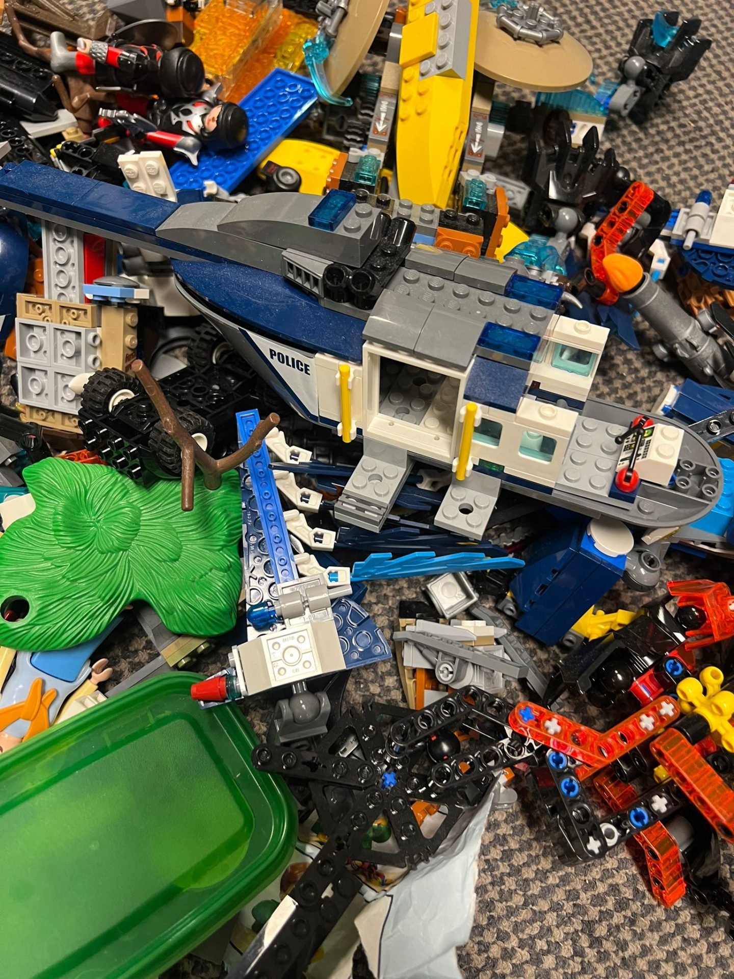 Een grote partij van ongeveer 2,5 kilo aan diverse LEGO stenen en onderdelen. Ideaal voor het aanvullen van bestaande collecties, het bouwen van eigen creaties (MOC’s) of voor urenlang speelplezier. De partij bevat een mix van verschillende kleuren, vormen en mogelijk ook onderdelen van specifieke sets, waaronder een politieboot en andere voertuigonderdelen.