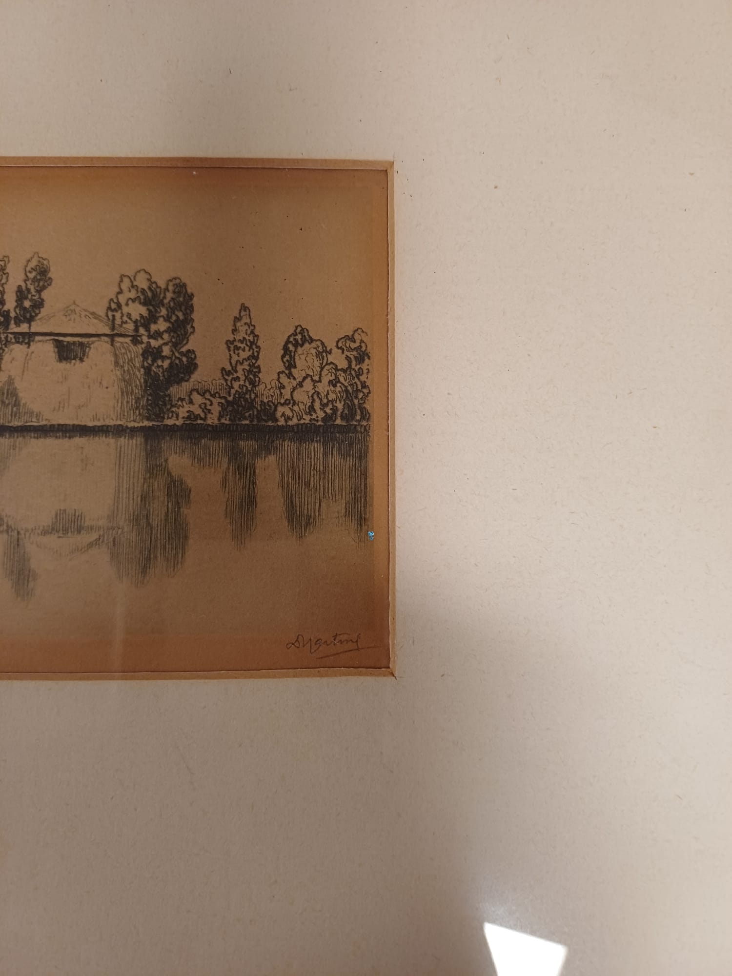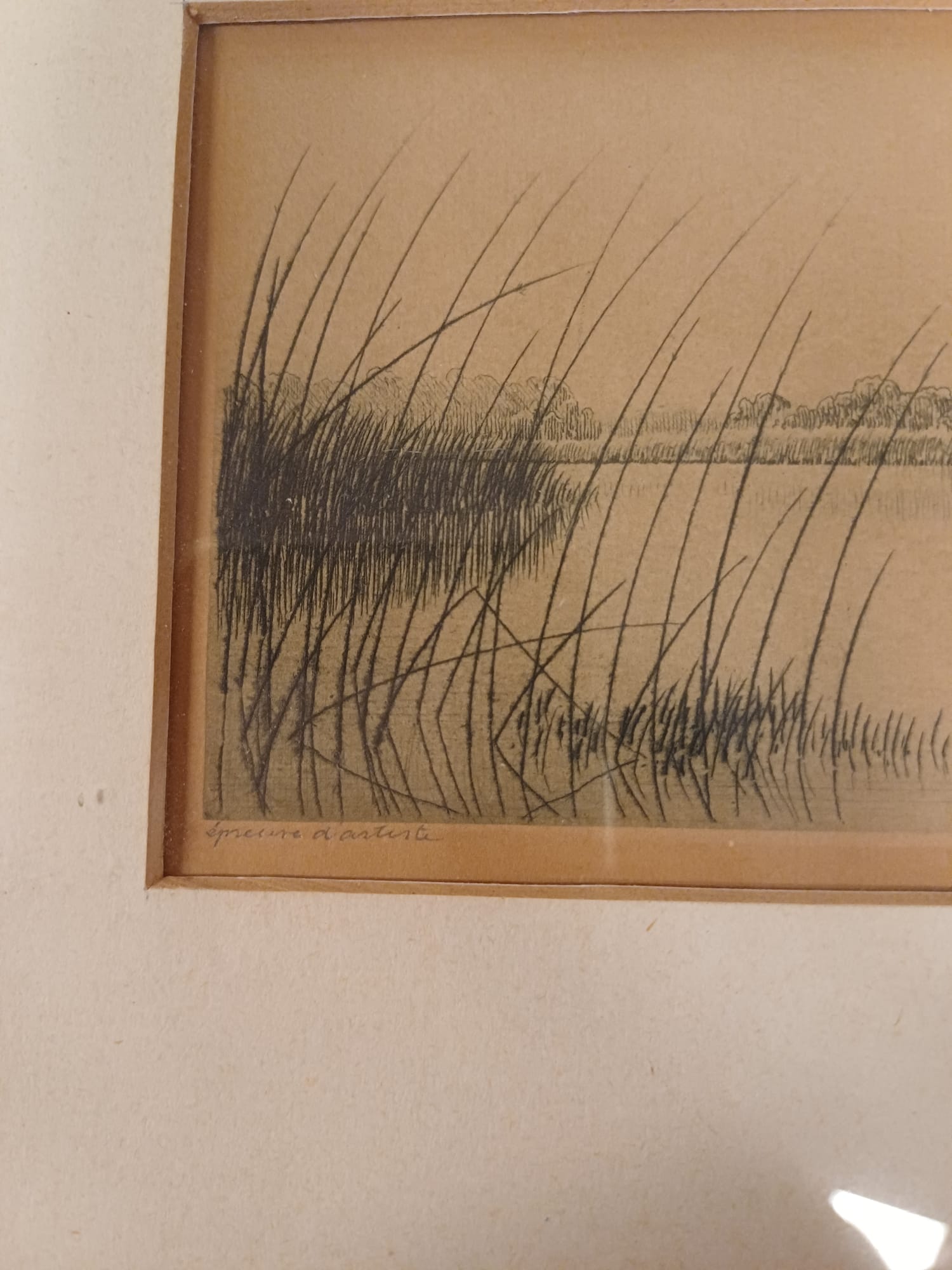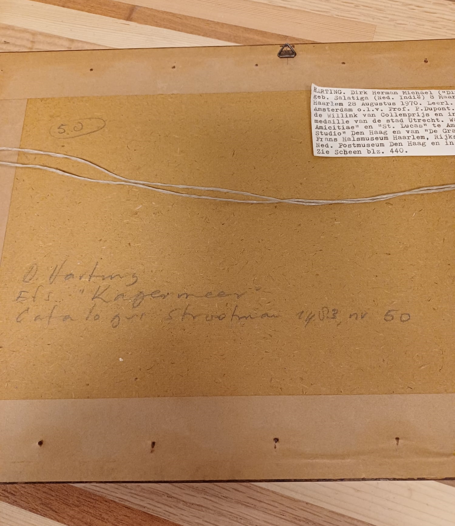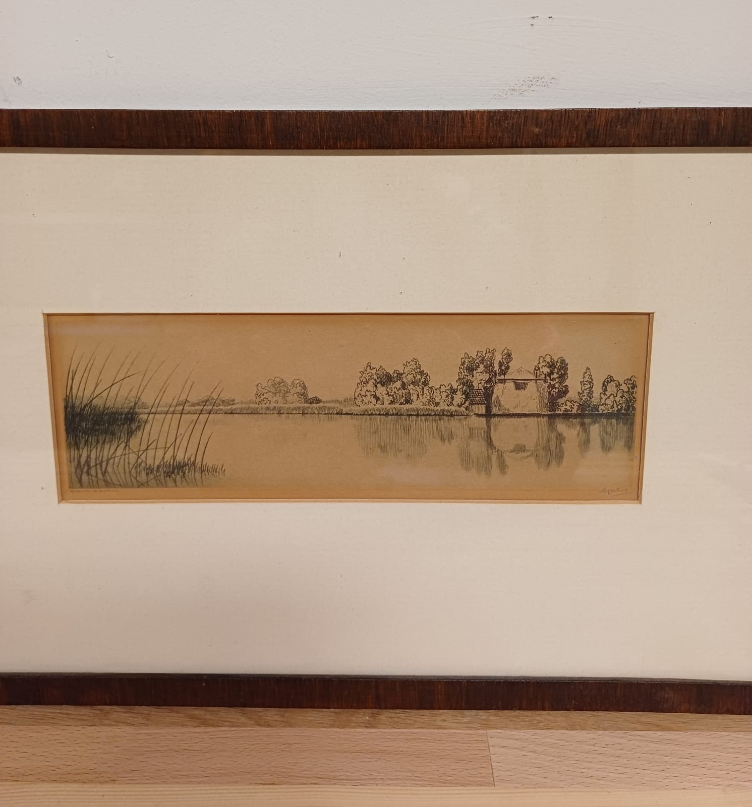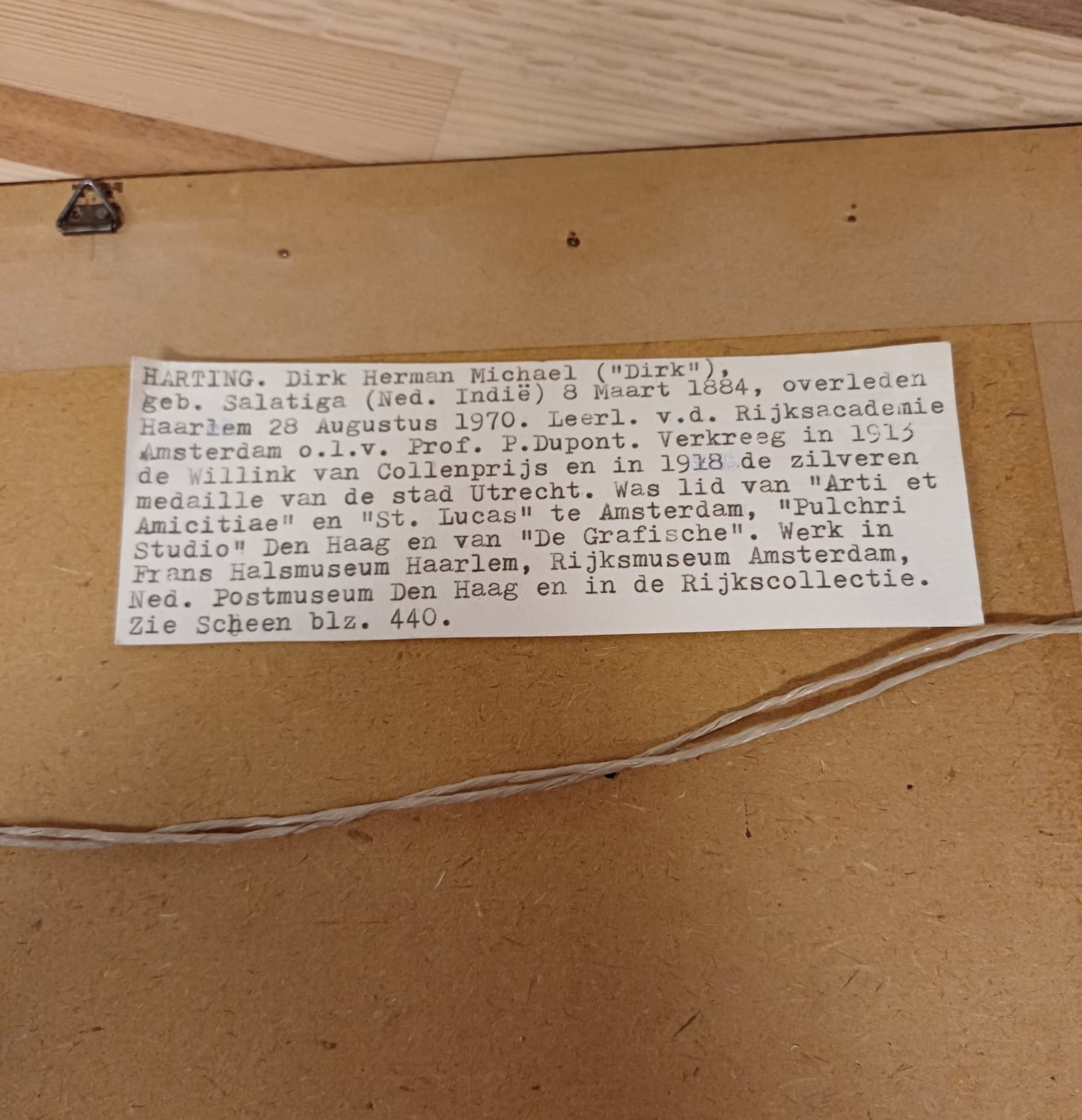 Prachtige tekening van Dirk Harting, voorstellende een landschap met water en riet. Gesigneerd. Dirk Harting was een Nederlands kunstenaar, geboren in 1884 en overleden in 1970. Hij was lid van Arti et Amicitiae en St. Lucas.