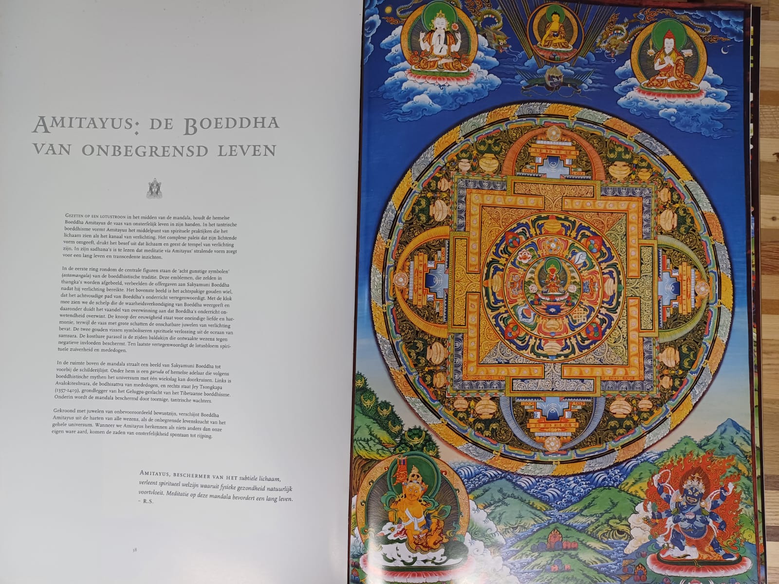 Ware kunst geeft toegang tot het goddelijke. De schilderijen in deze hemelse galerij zijn gefundeerd op de antieke wijsheid van de boeddhistische en hindoe•stische tradities die al eeuwen lang enkele van de diepste, spirituele inzichten bieden. Toch overstijgen deze weelderige afbeeldingen hun plaats van oorsprong volledig. Als archetypische uitdrukking van onthechte visioenen, weerspiegelen de schilderijen uiteindelijk ons diepste potentieel: de mogelijkheid van complete spirituele verlossing of verlichting.