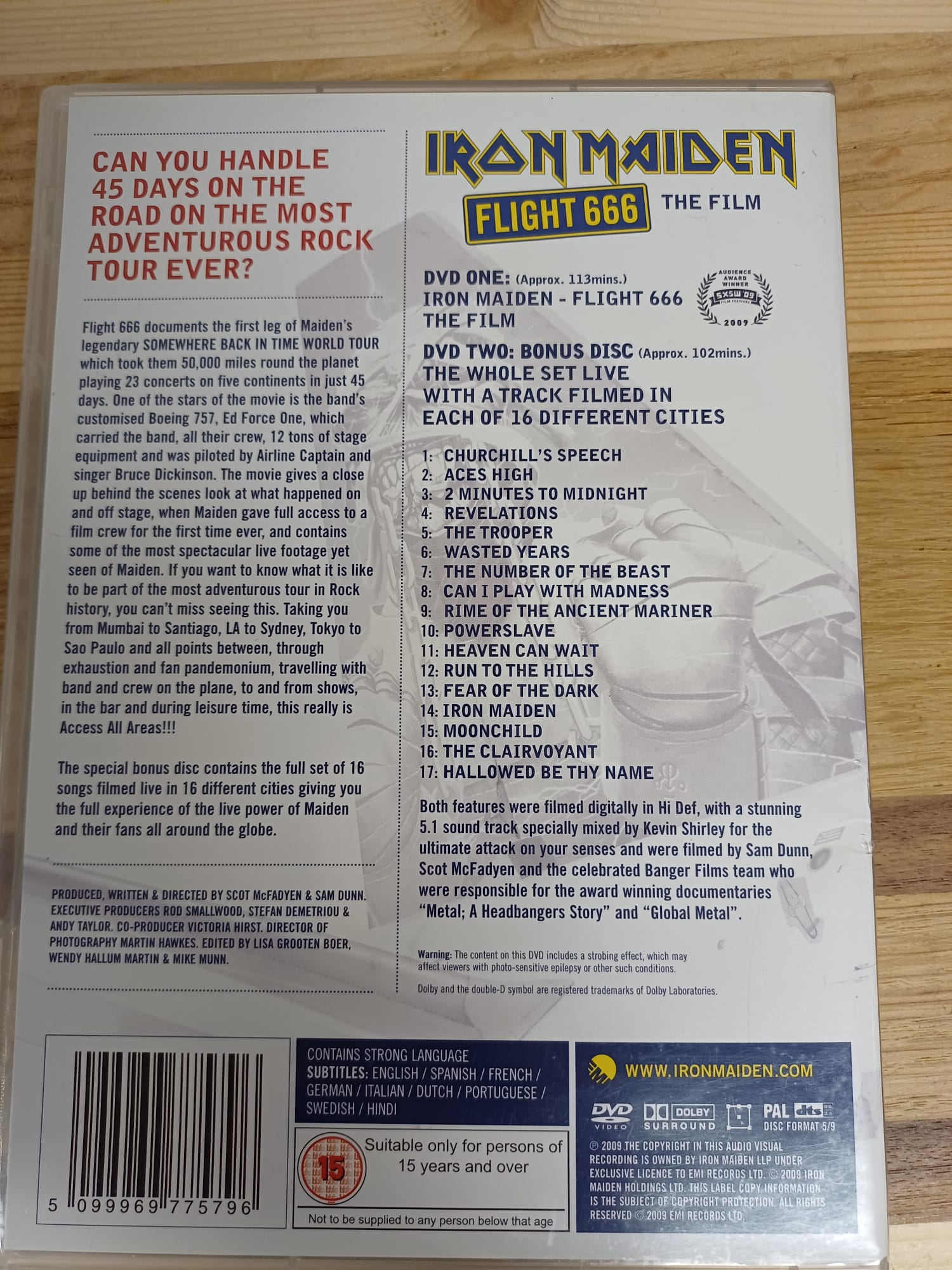 Flight 666 is de documentaire die het eerste gedeelte van Iron Maiden’s legendarische wereldtournee Somewhere Back In Time vastlegt. Hun Boeing 757, de Ed Force One met aan de stuurknuppel zanger Brice Dickinson, bracht de band 75.000 kilometer om de aarde voor 23 concerten in 45 dagen. Flight 666 geeft een fascinerende en vaak ook hilarische kijk op het leven van de mannen van Iron Maiden gedurende die periode. Concertfragmenten worden afgewisseld met een blik achter en ook voor de schermen, het geheel is voorzien van een 5.1 Surround soundtrack. Flight 666 draaide op 21 april wereldwijd 1 dag in de bioscopen en ook in Nederland werden 11 uitverkochte zalen, verspreid over het hele land, op zijn kop gezet. Iron Maiden, winnaar van de Brit Award 2009 voor Best British Live Act, werd op het South By South West fi lmfestival dit jaar onderscheiden als de SXSW ’09 Audience Award Winner.