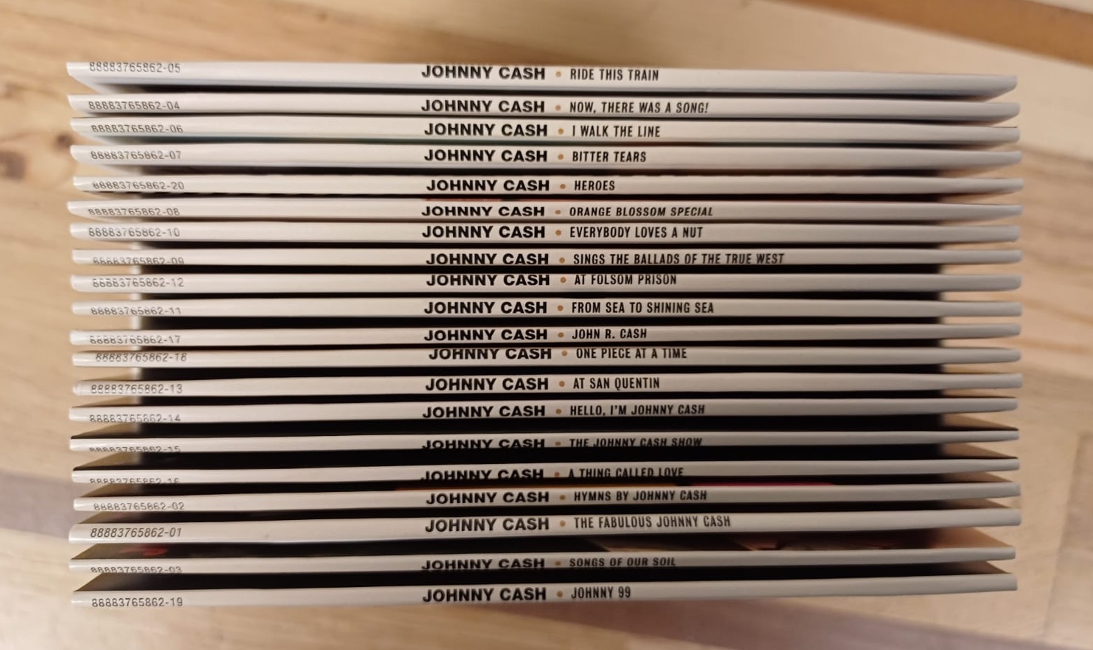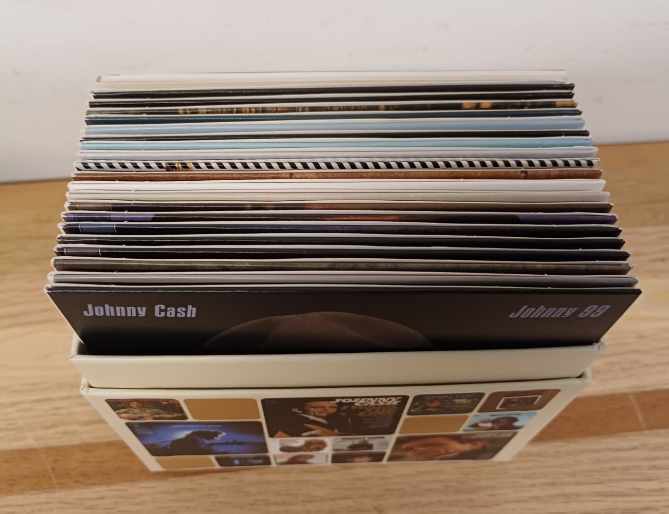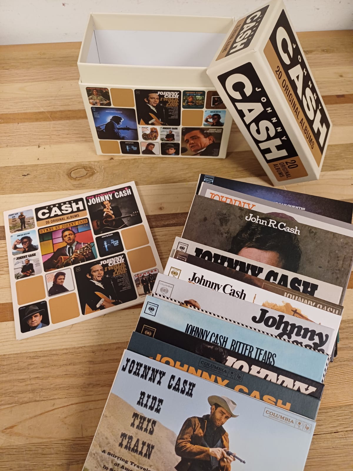 JOHNNY CASH 20 original albums. Boxset met twintig cd’s, met alle albums die je ooit nodig zult hebben en meer, elk in een eigen kartonnen hoesje met afbeelding en een full-colour boekje van 36 pagina’s, verpakt in een kartonnen doos.