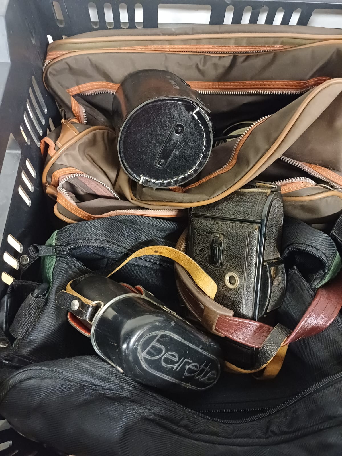 Krat voorzien van foto apparatuur