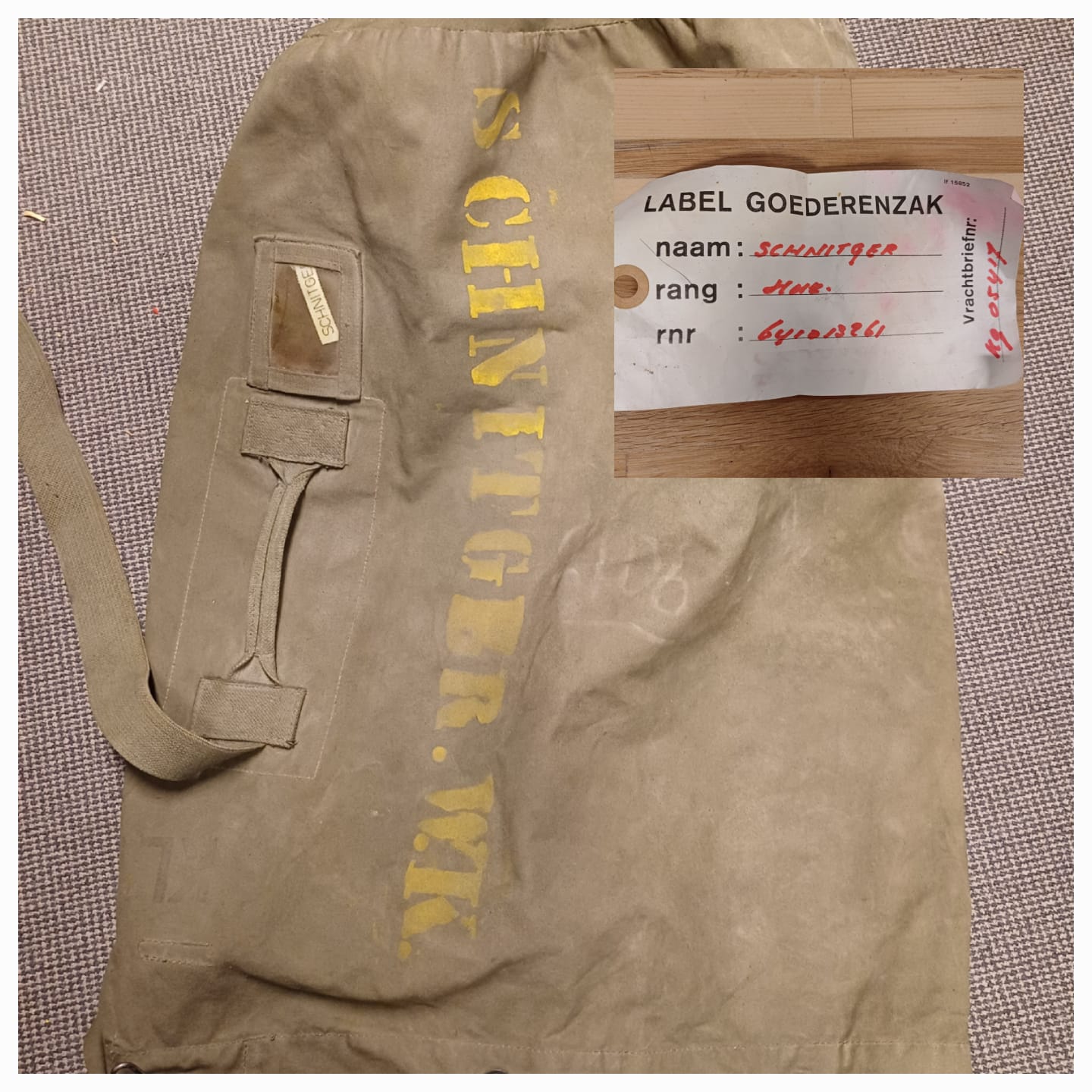 Legertas / plunjezak voorzien van kleding en accessoires