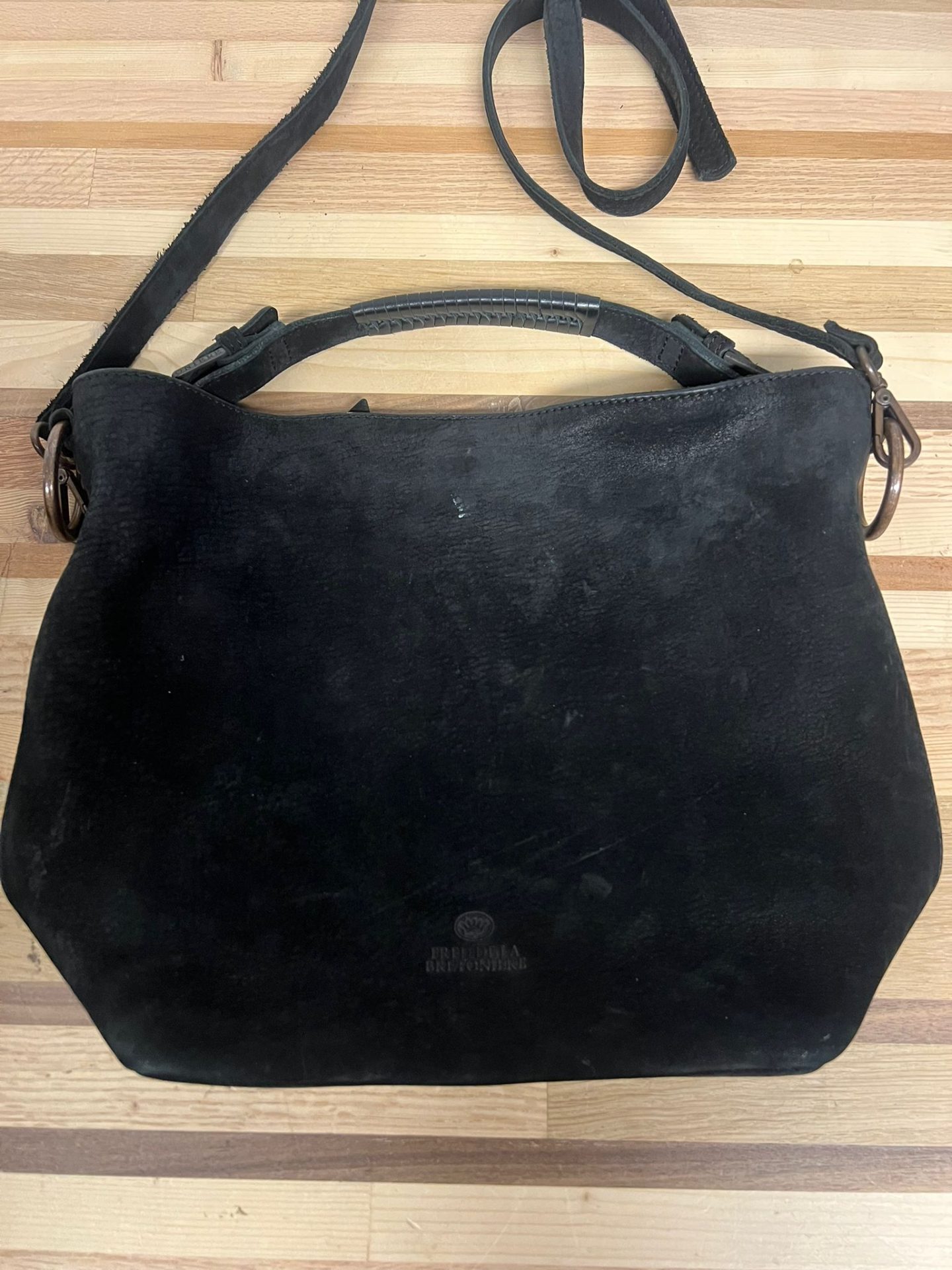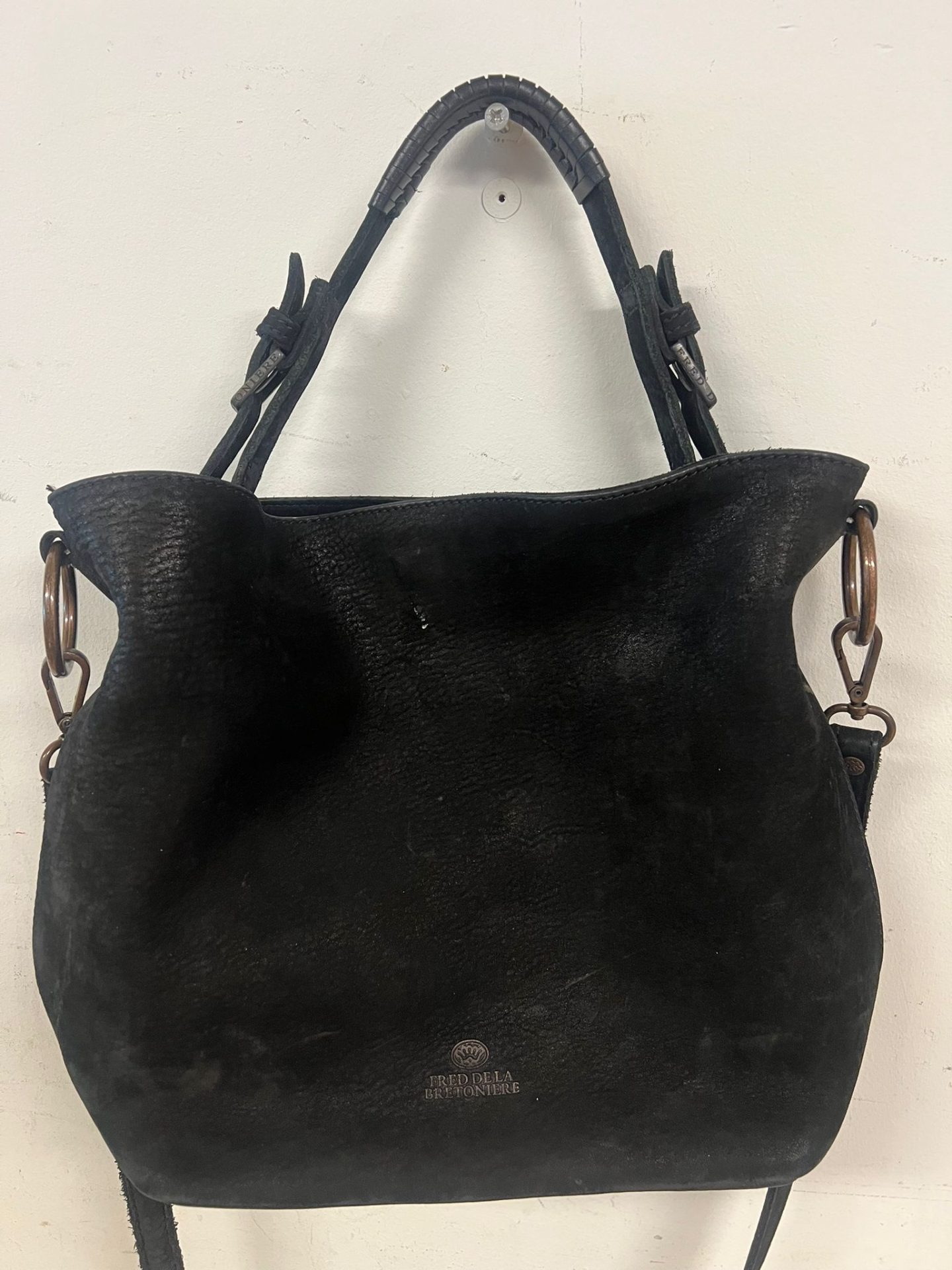 Mooie zwarte leren schoudertas van Fred Dela Bretoniere. De tas is gemaakt van hoogwaardig leer en heeft een tijdloos design. Perfect voor dagelijks gebruik.