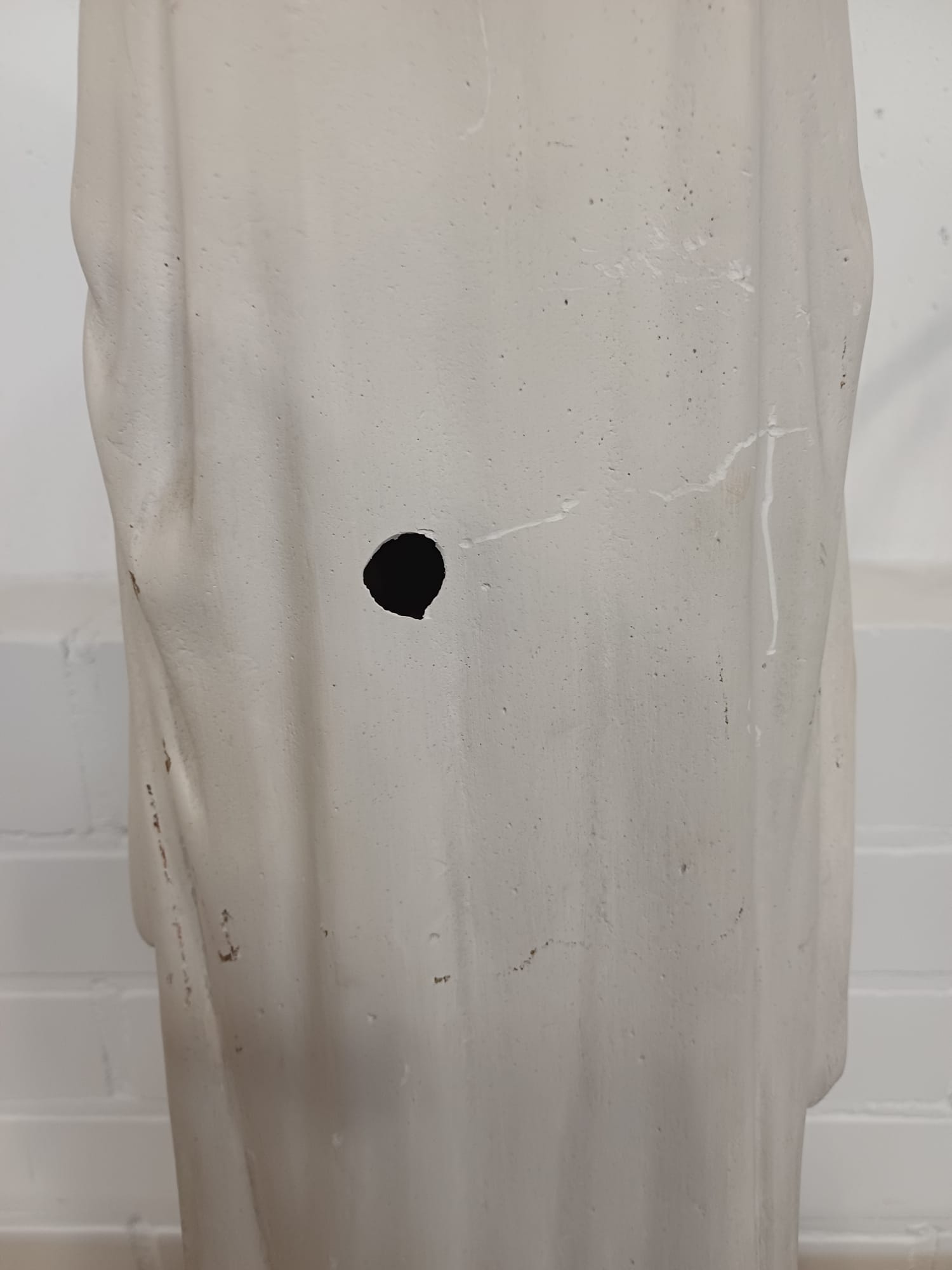 Status: is in gebruikte staat, aan achterzijde iets beschadigd (gat)