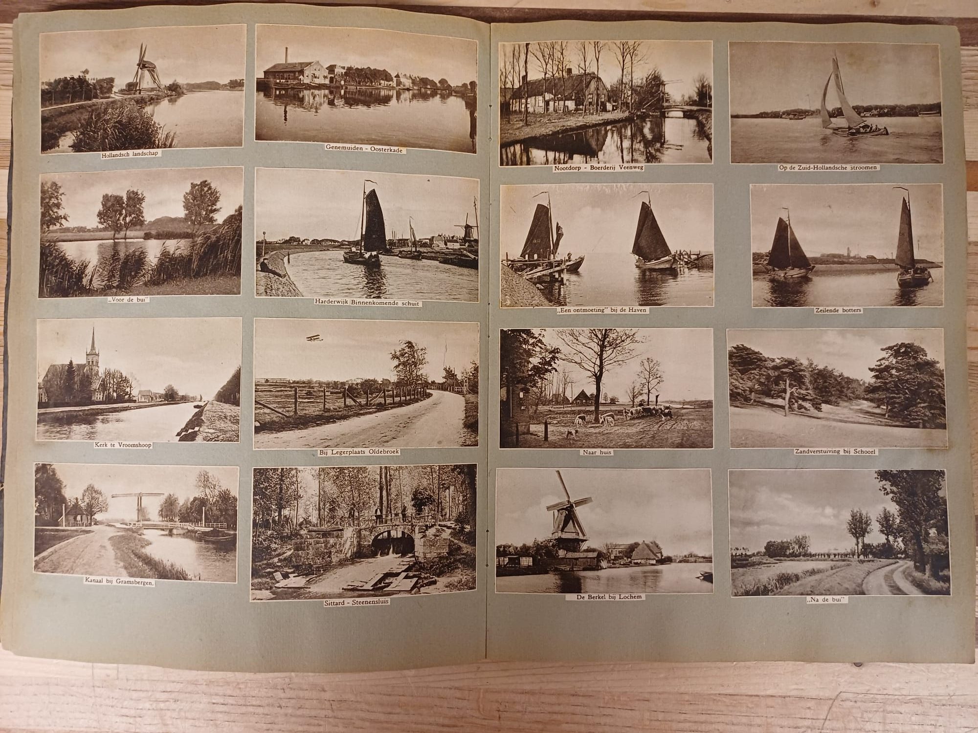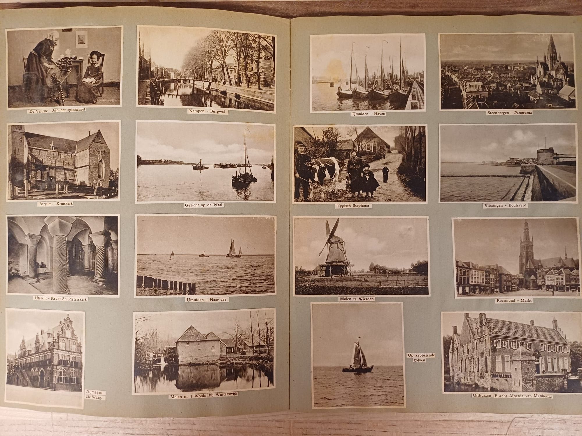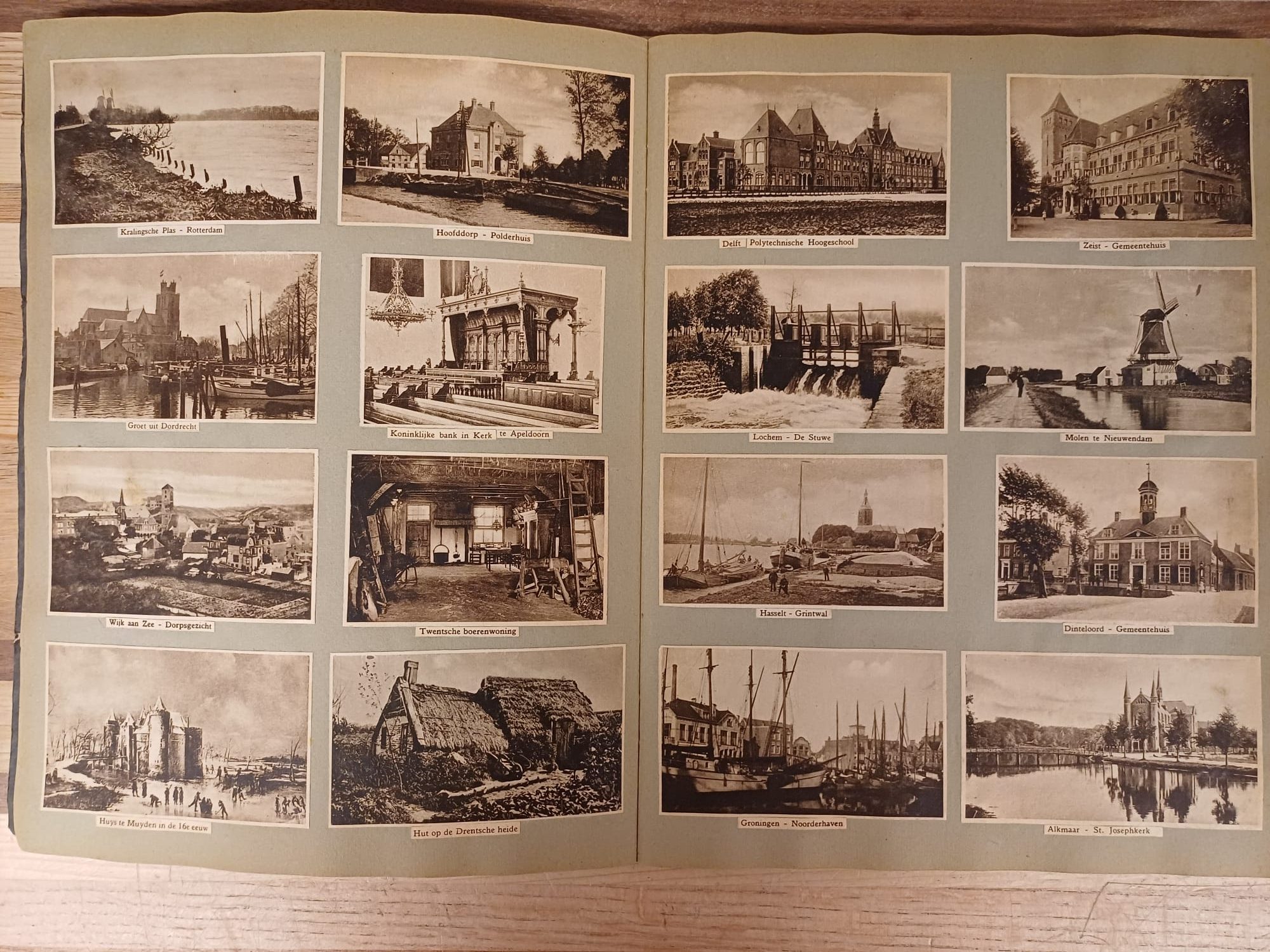 Plaatjesalbum met de landschap plaatjes van de mooiste plekjes van Nederland. De plaatjes moesten zelf uitgeknipt worden van de kalender van het jaar.
