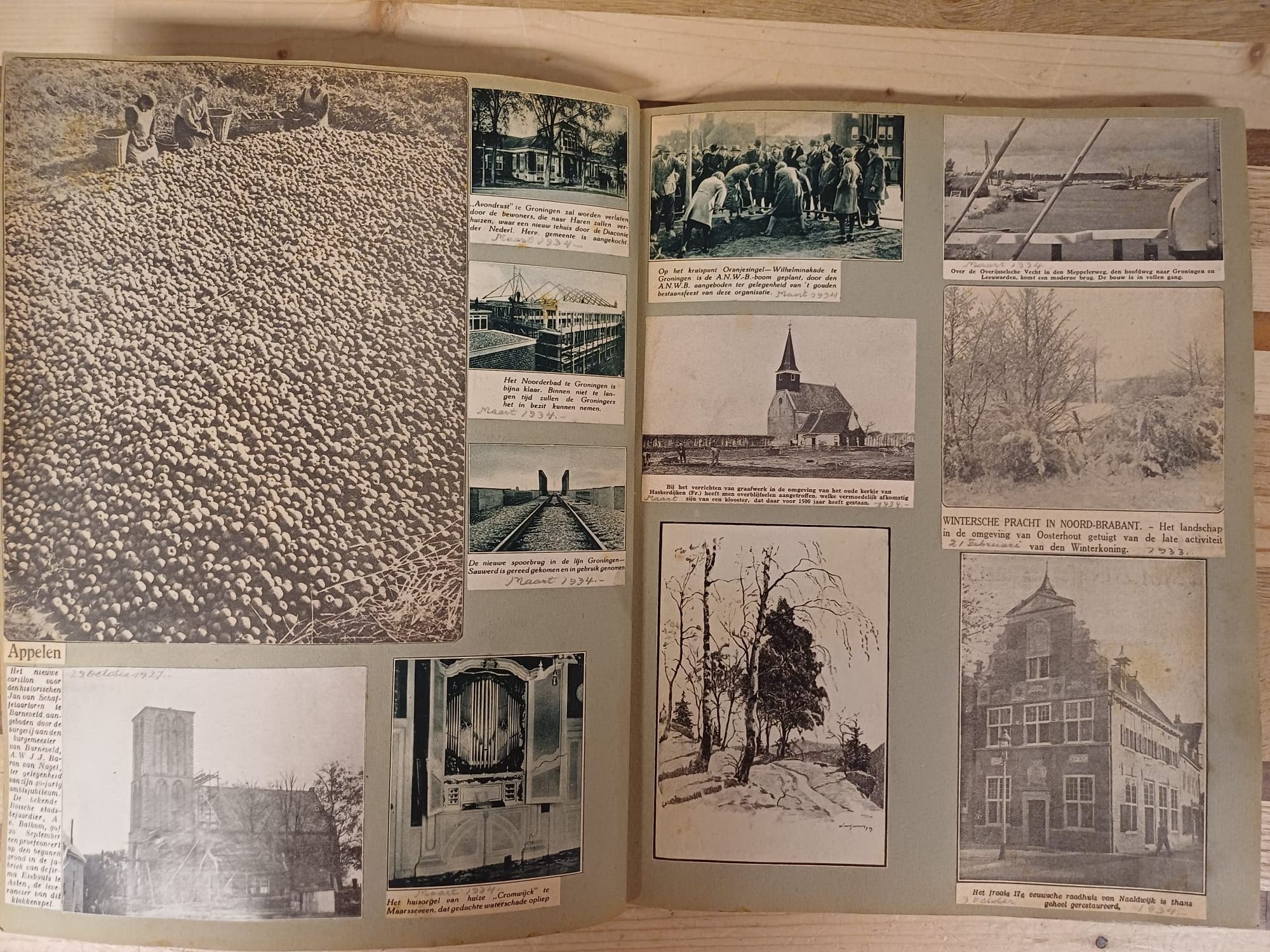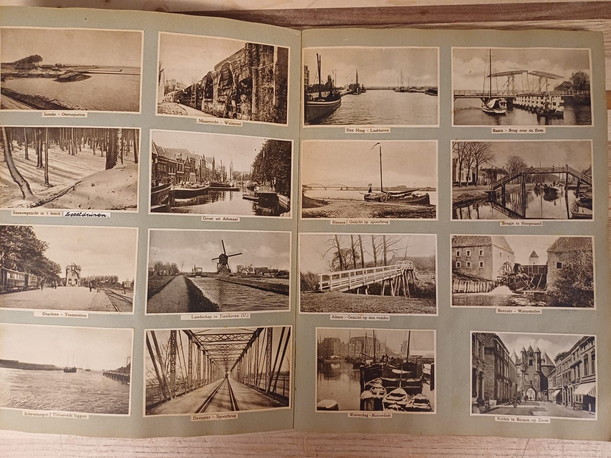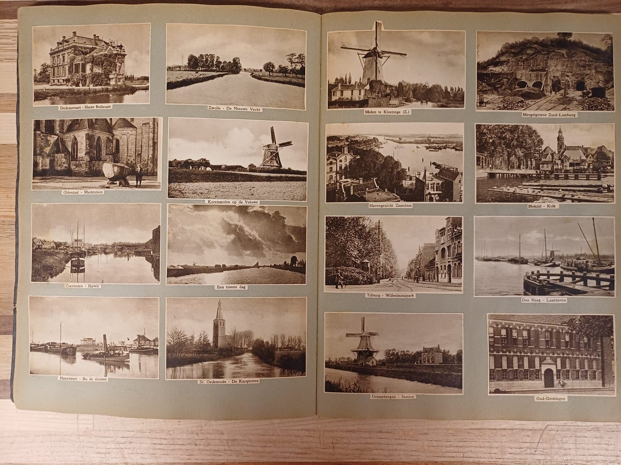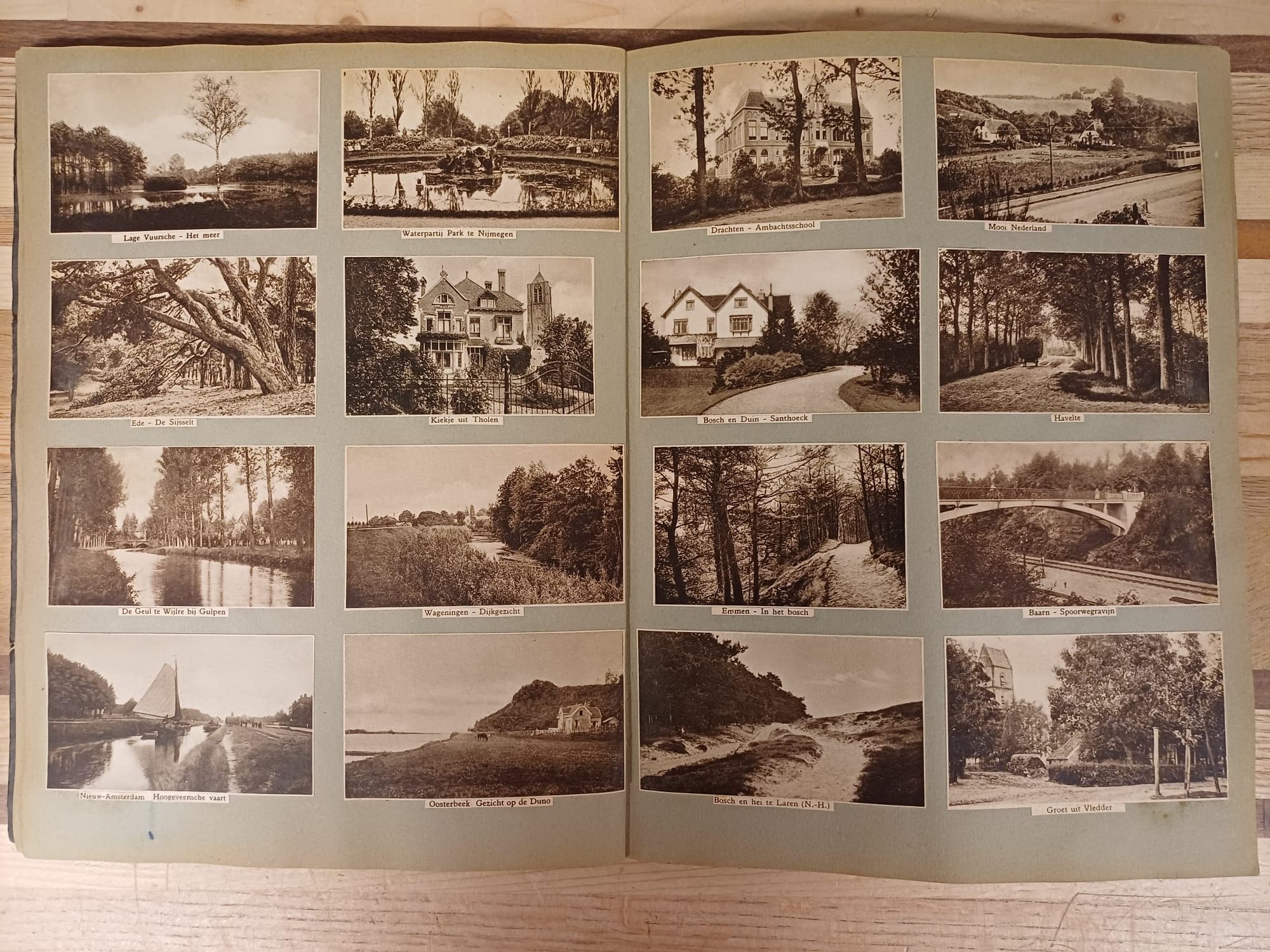 Plaatjesalbum met de landschap plaatjes van de mooiste plekjes van Nederland. De plaatjes moesten zelf uitgeknipt worden van de kalender van het jaar.
