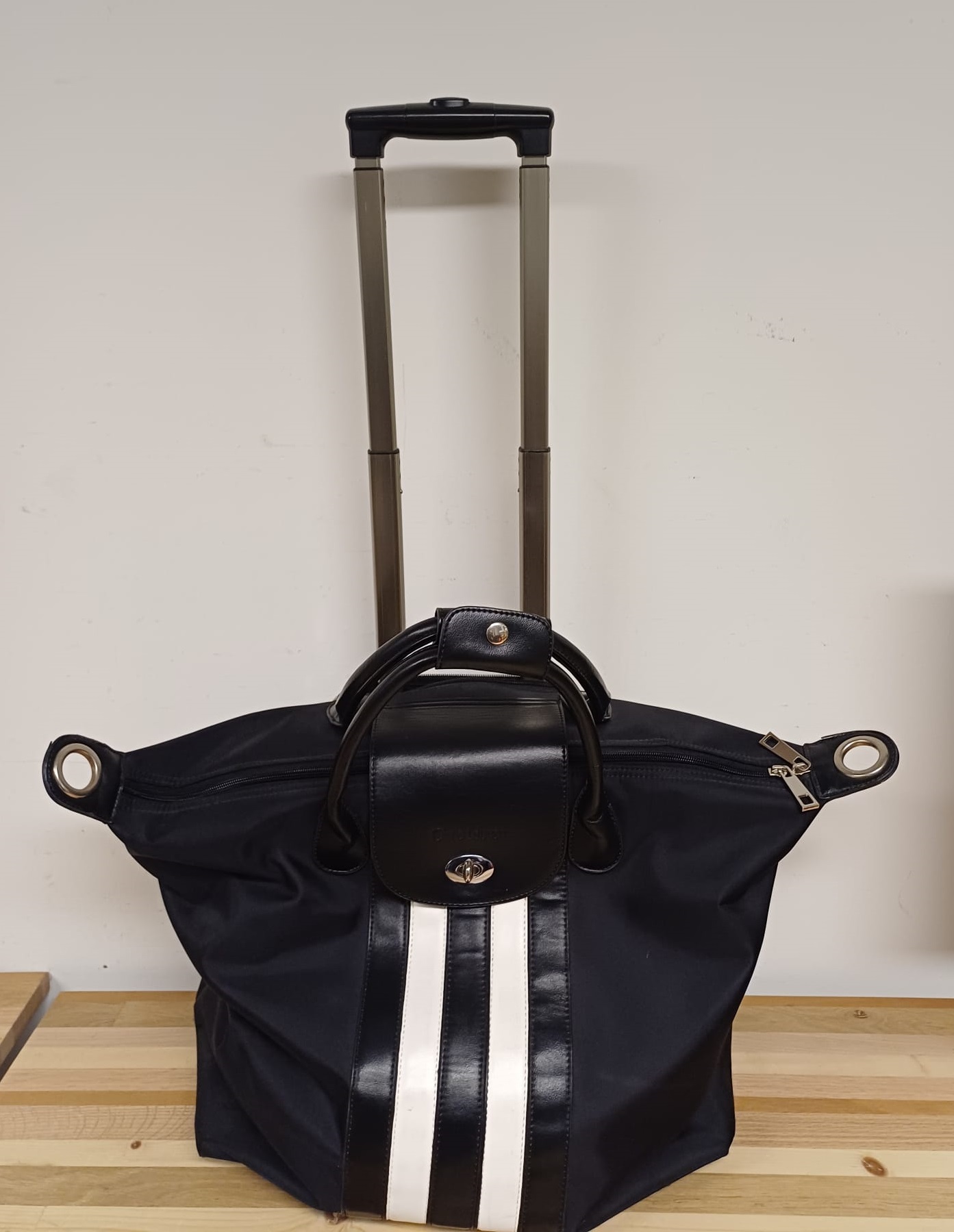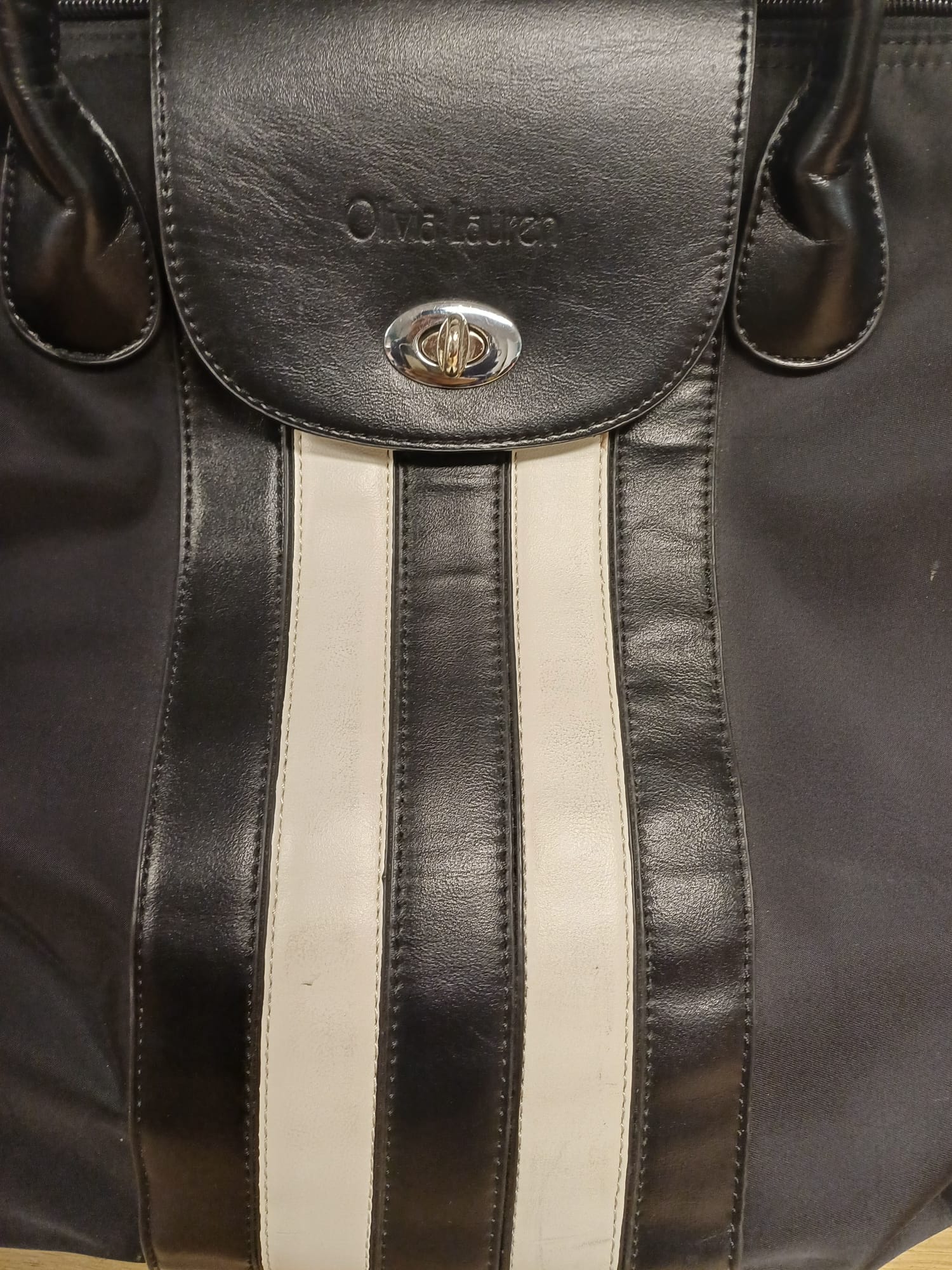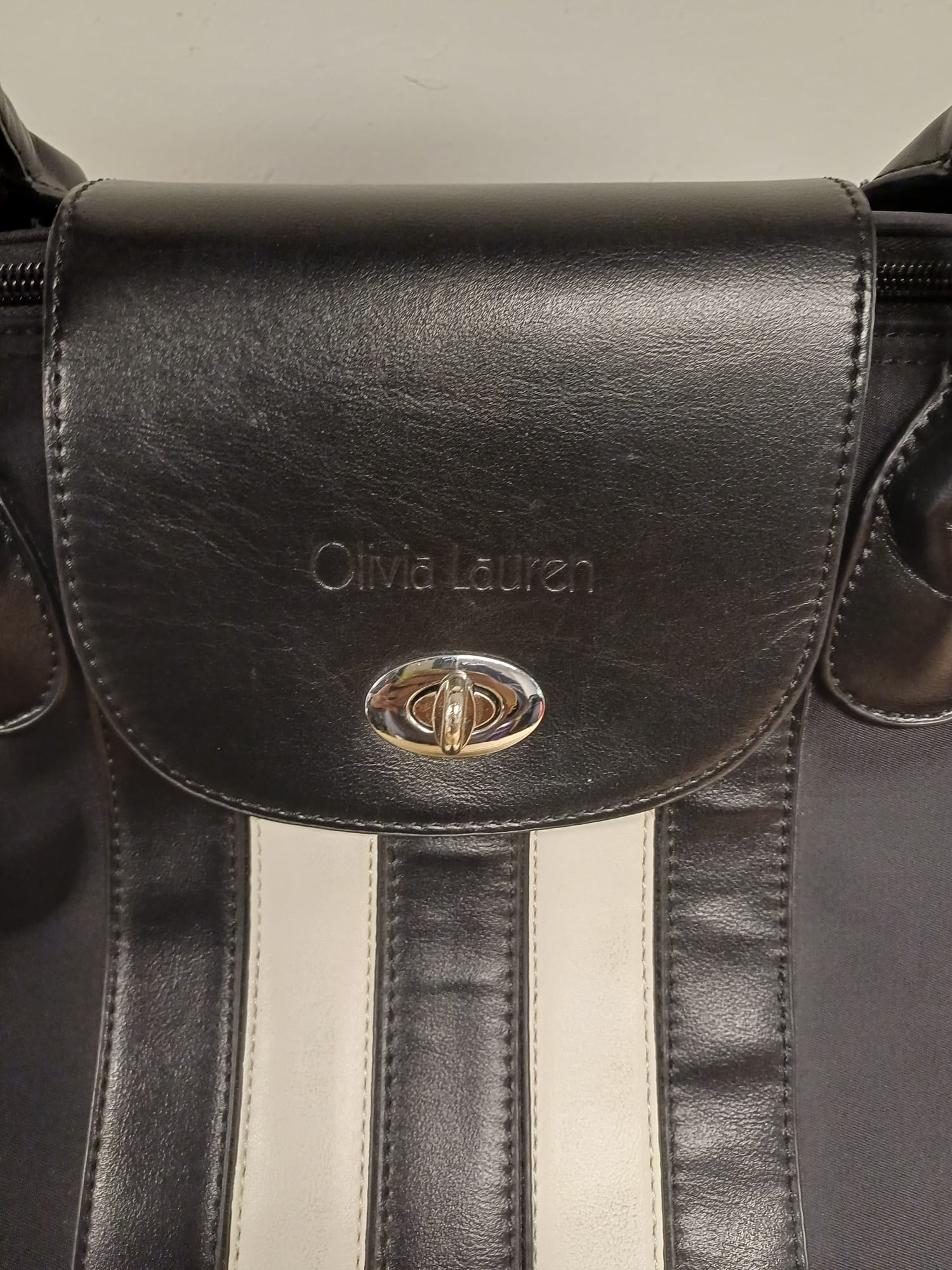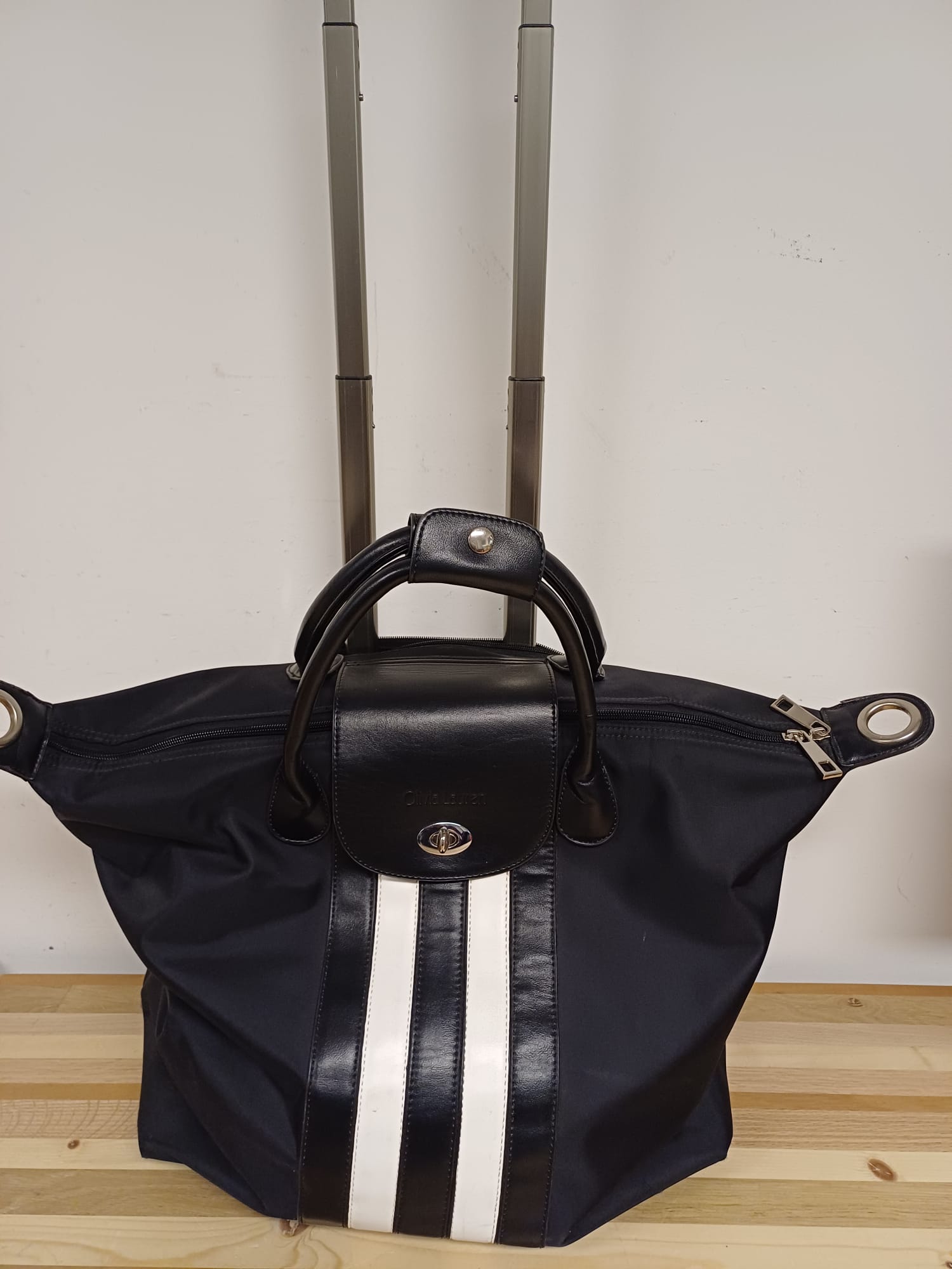 Mooie Olivia Lauren trolley tas. Ideaal voor reizen of dagelijks gebruik. Met handige wieltjes en uitschuifbare handgreep. Biedt voldoende ruimte voor al uw benodigdheden. Zwart met witte accenten.