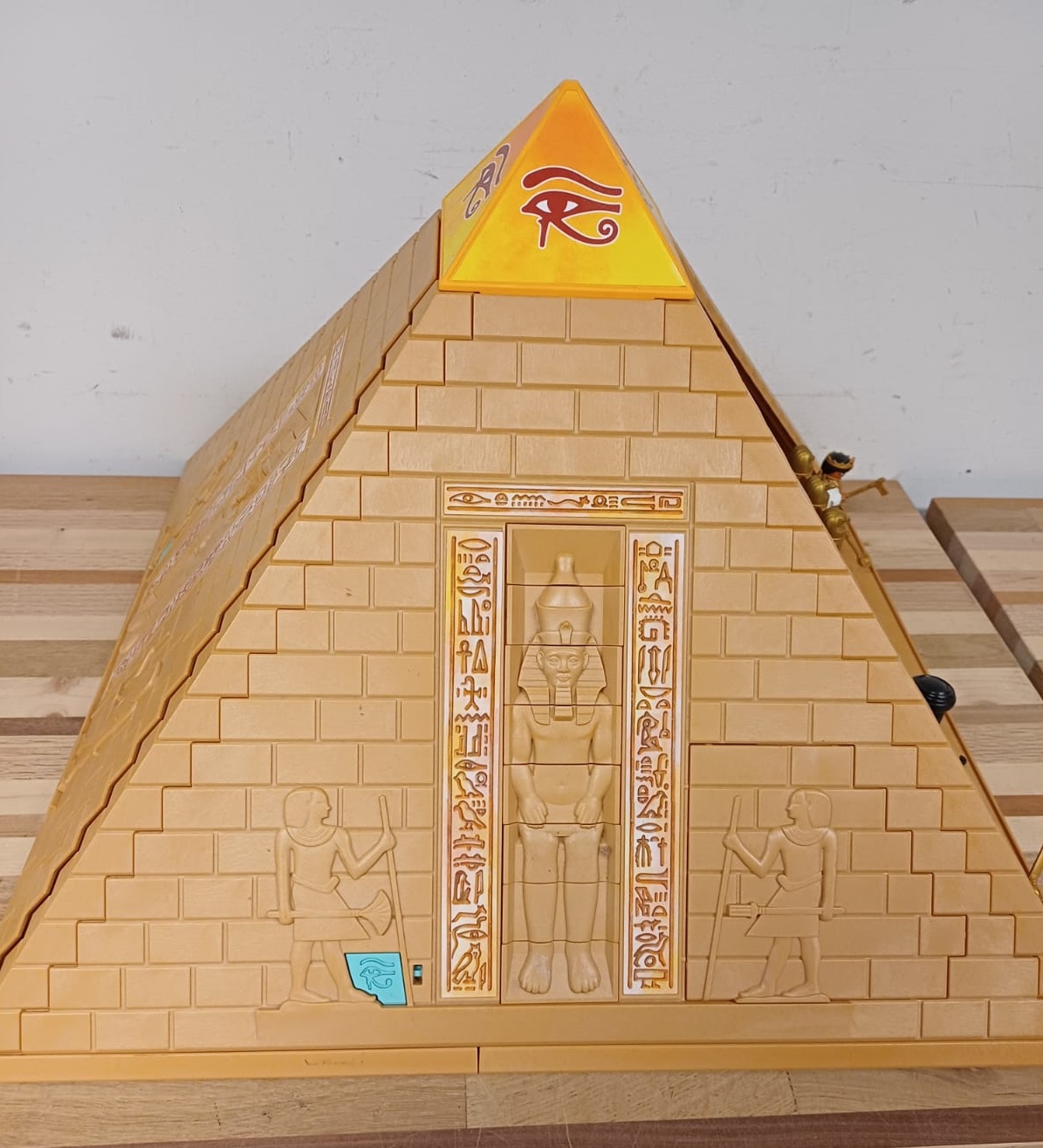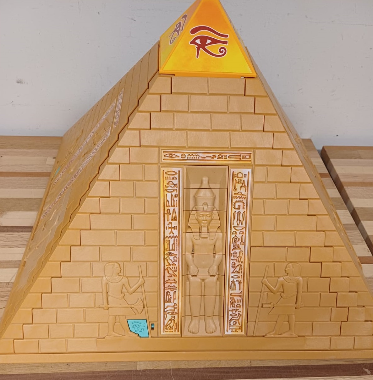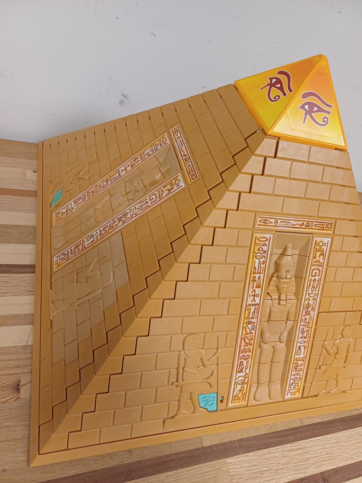 Status: is in goede staat, is zo goed als compleet – wat extra onderdelen – er is een stukje afgebroken, maar als de pyramide in elkaar is, zie je daar niets van