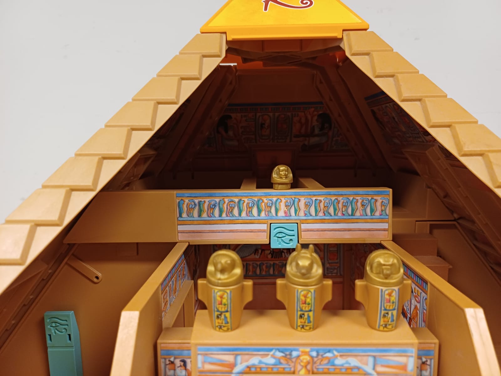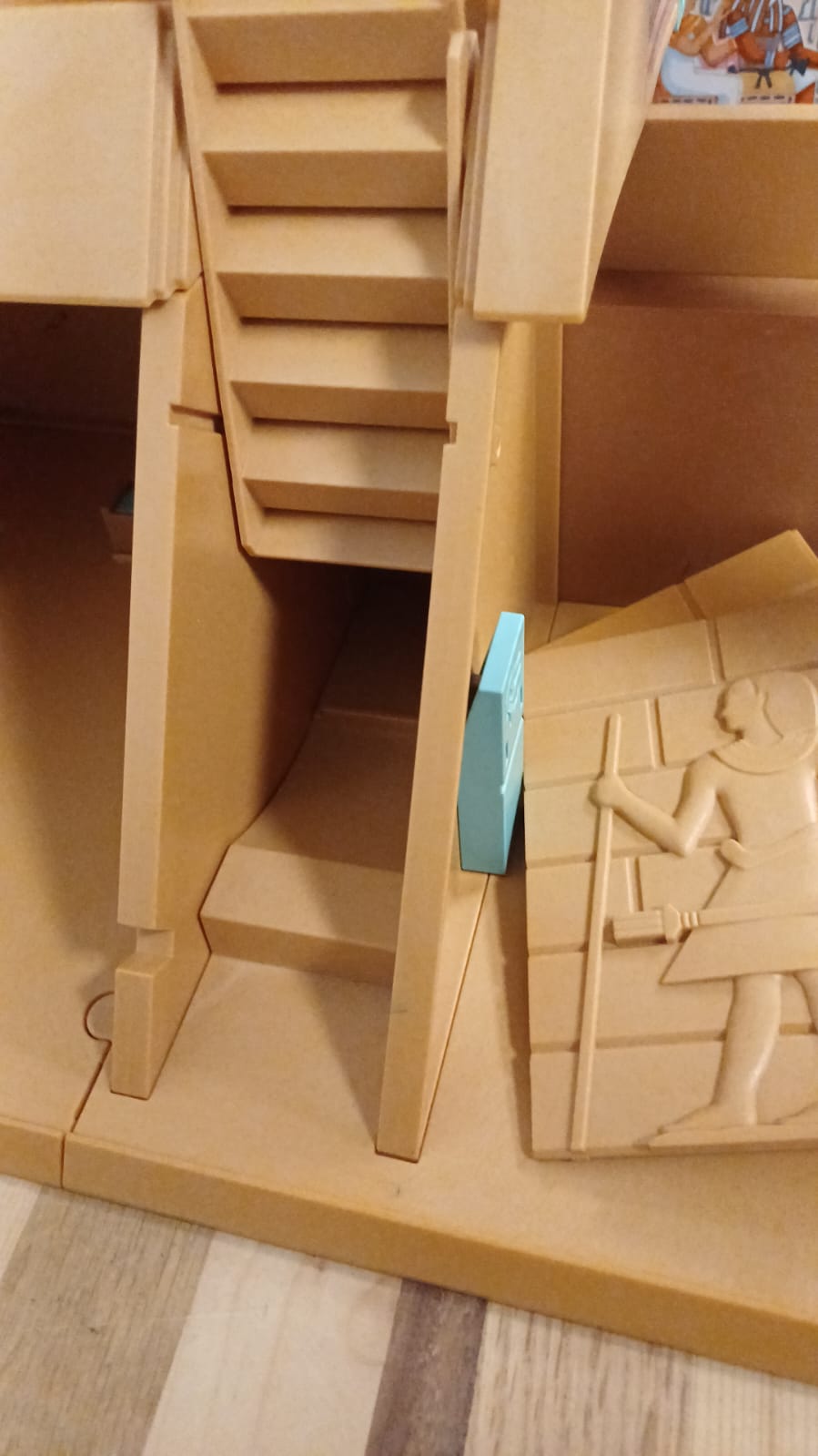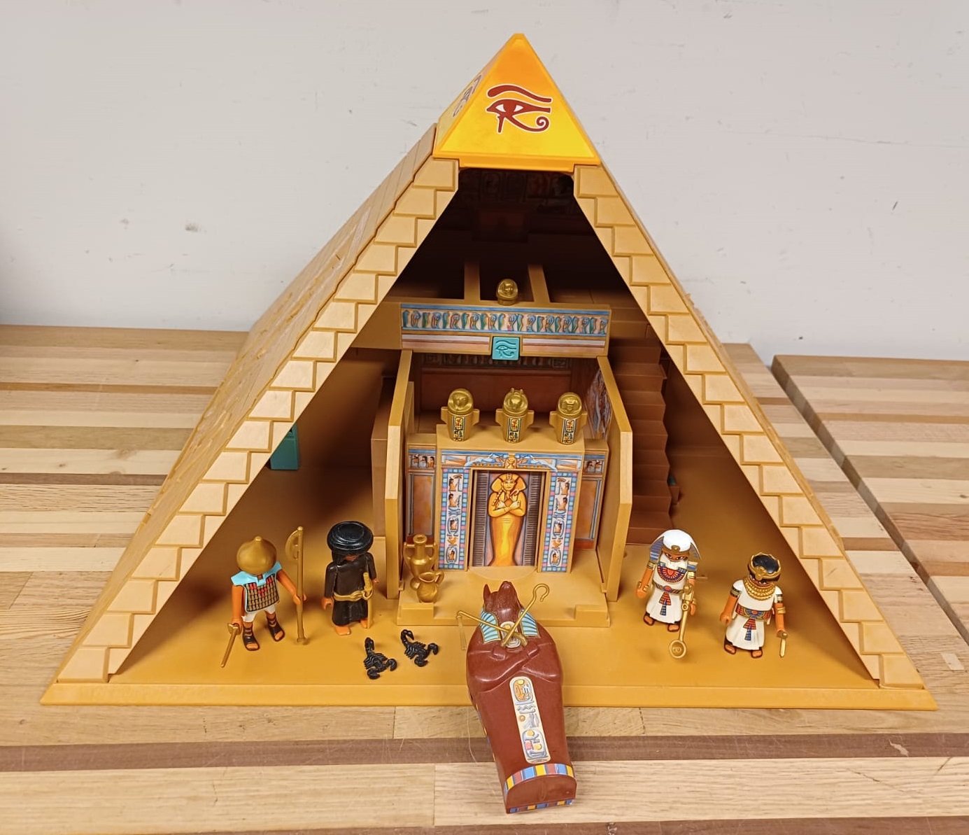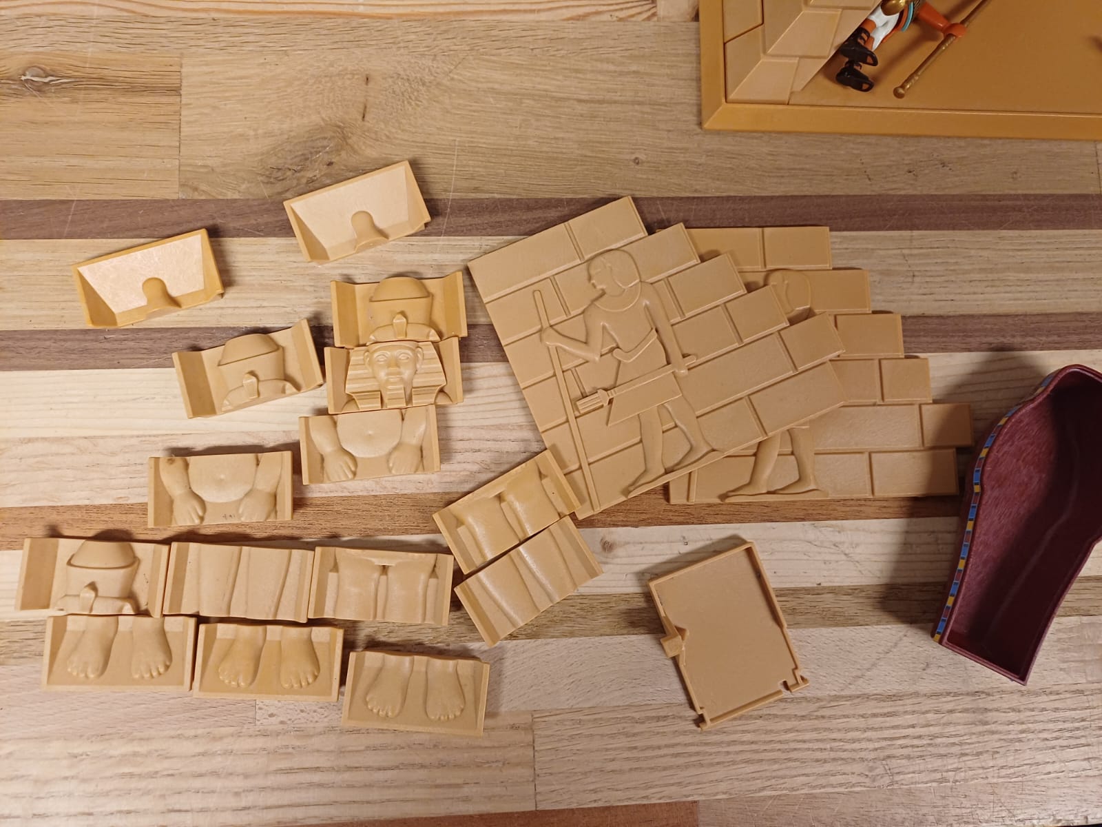 Status: is in goede staat, is zo goed als compleet – wat extra onderdelen – er is een stukje afgebroken, maar als de pyramide in elkaar is, zie je daar niets van
