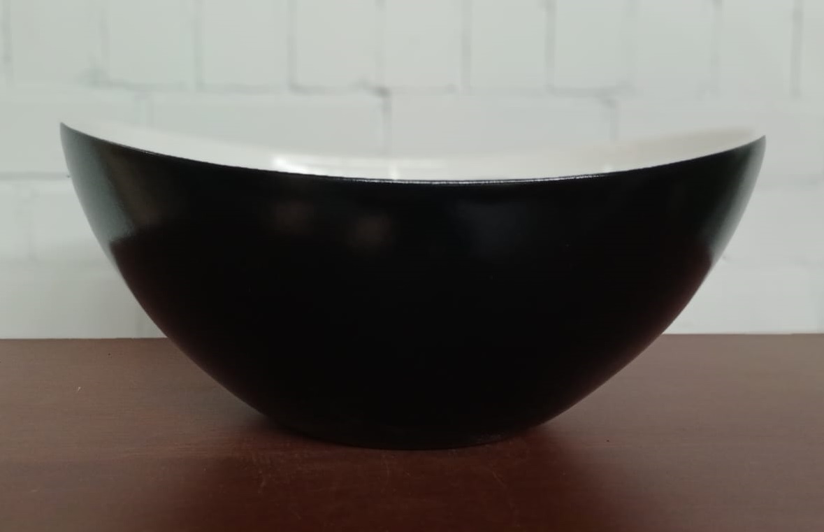 De Plieger Scale is een opbouw waskom met een uniek design. De binnenkant van de kom is wit en de buitenkant zwart. De kom is gemaakt van keramiek.