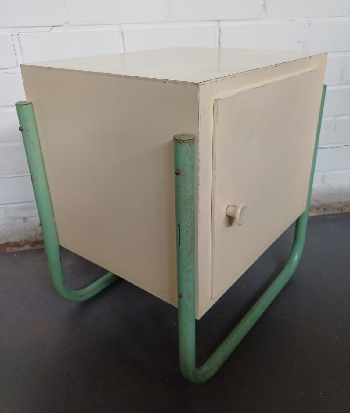 Retro nachtkastje – geel en groen