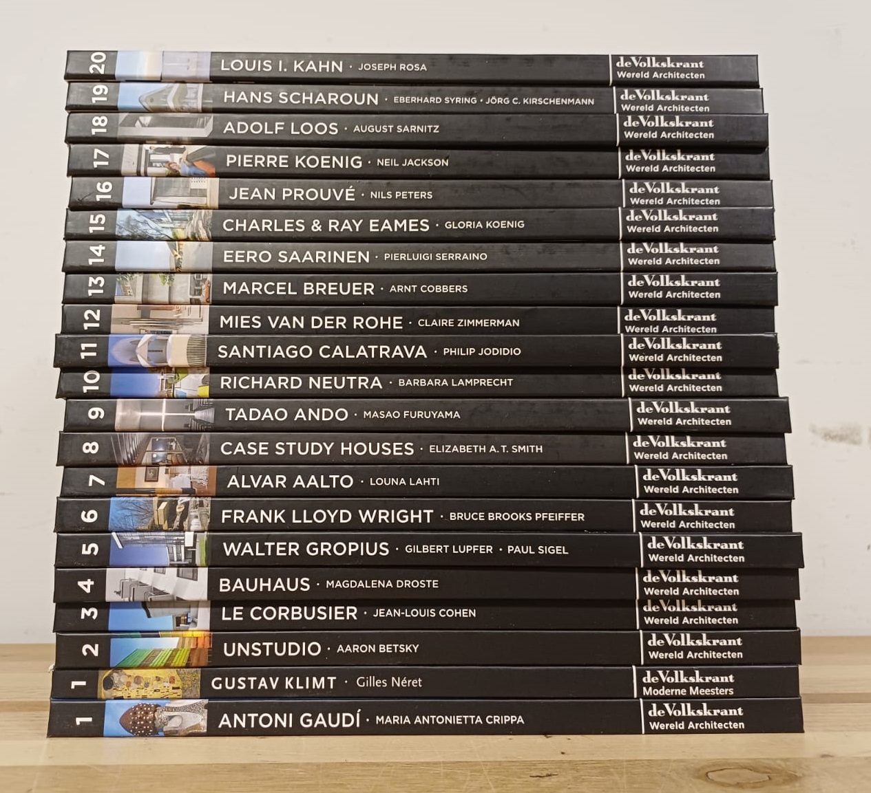 Complete serie boeken over bekende kunstenaars en architecten, uitgegeven door de Volkskrant. De boeken zijn in goede staat en vormen een mooie collectie voor de kunst- en architectuurliefhebber.