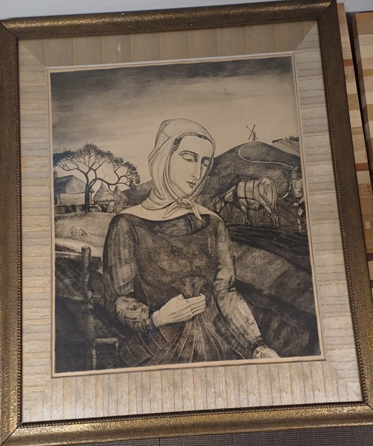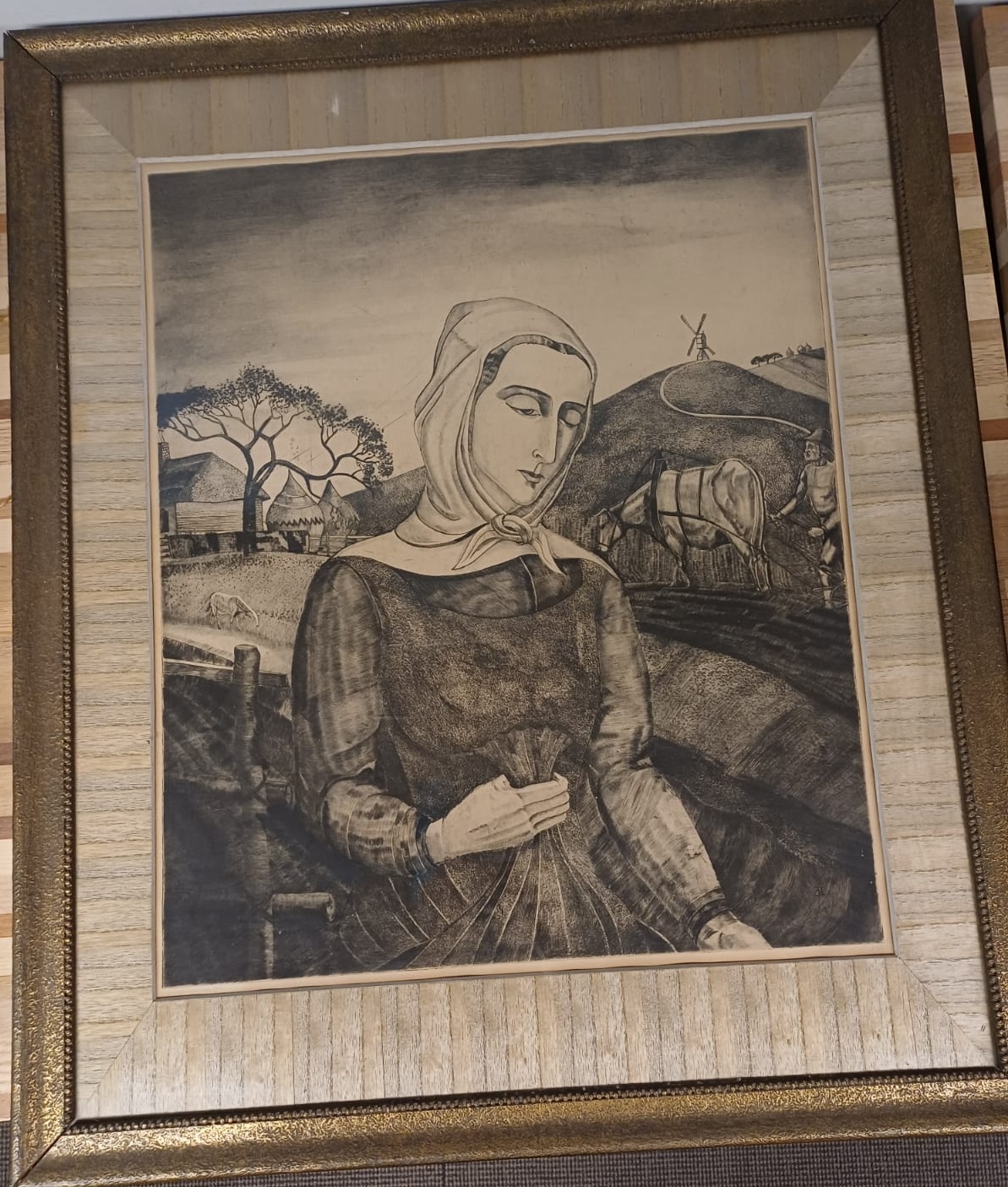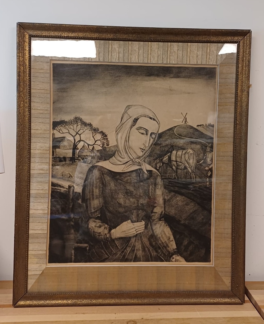 Formaat in lijst: B 69 x H 83 cmFormaat tekening: B 49 x H 59 cm