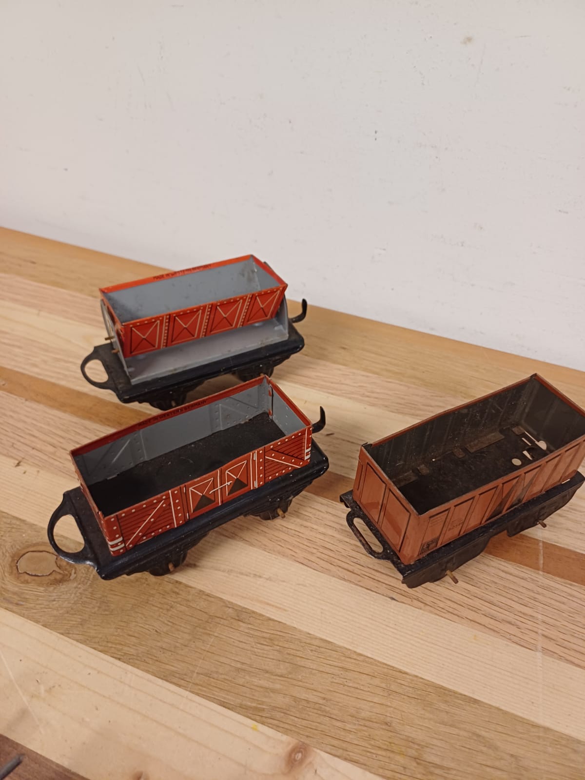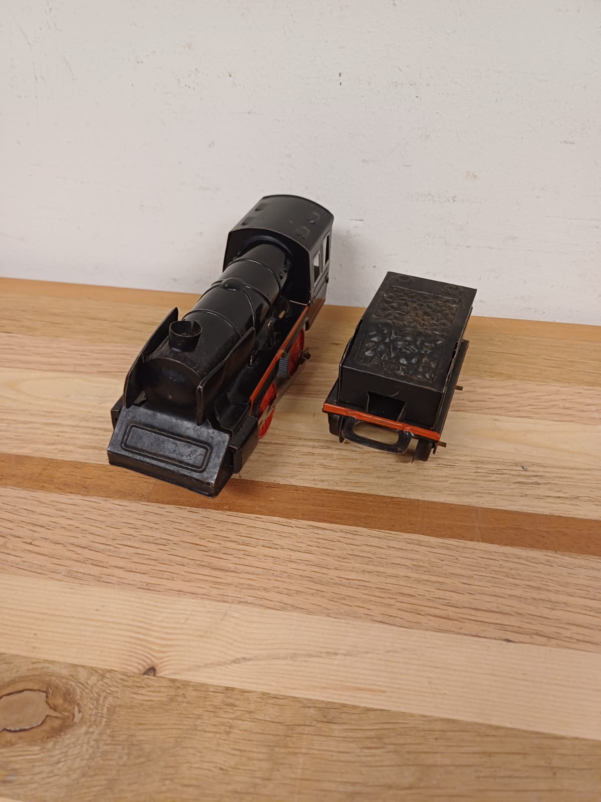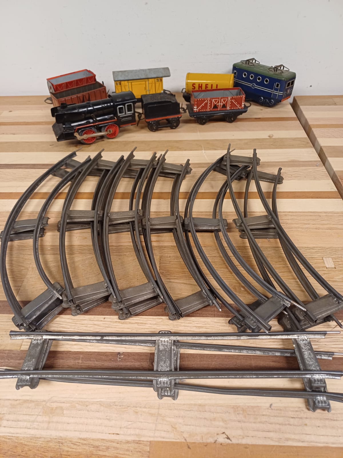 1 locomotief opwindbaar Western germany 8 wagons us zone germany 12 rails bochten 2 rechten stukken 1 opwind sleutel voor locomotief