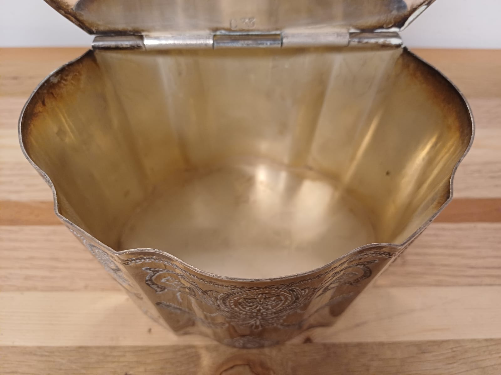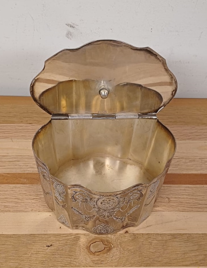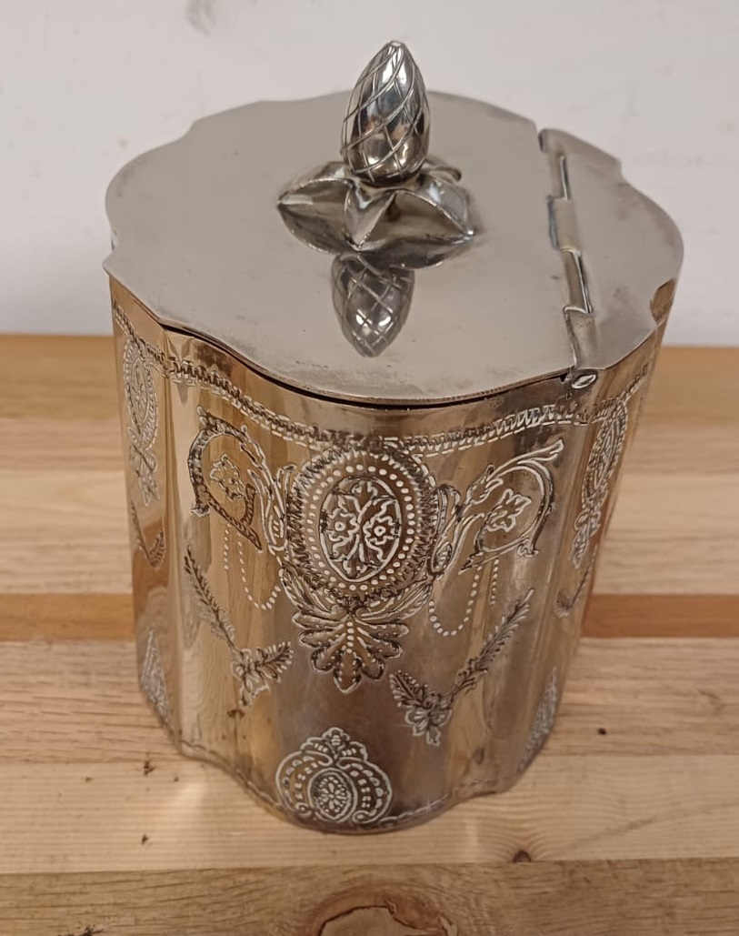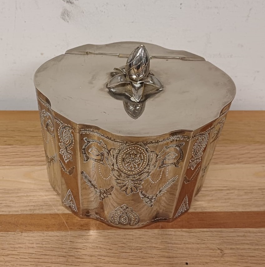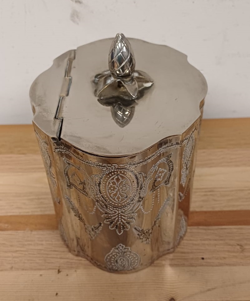 Victoriaanse verzilverde theebus met scharnierend deksel – 20e eeuw