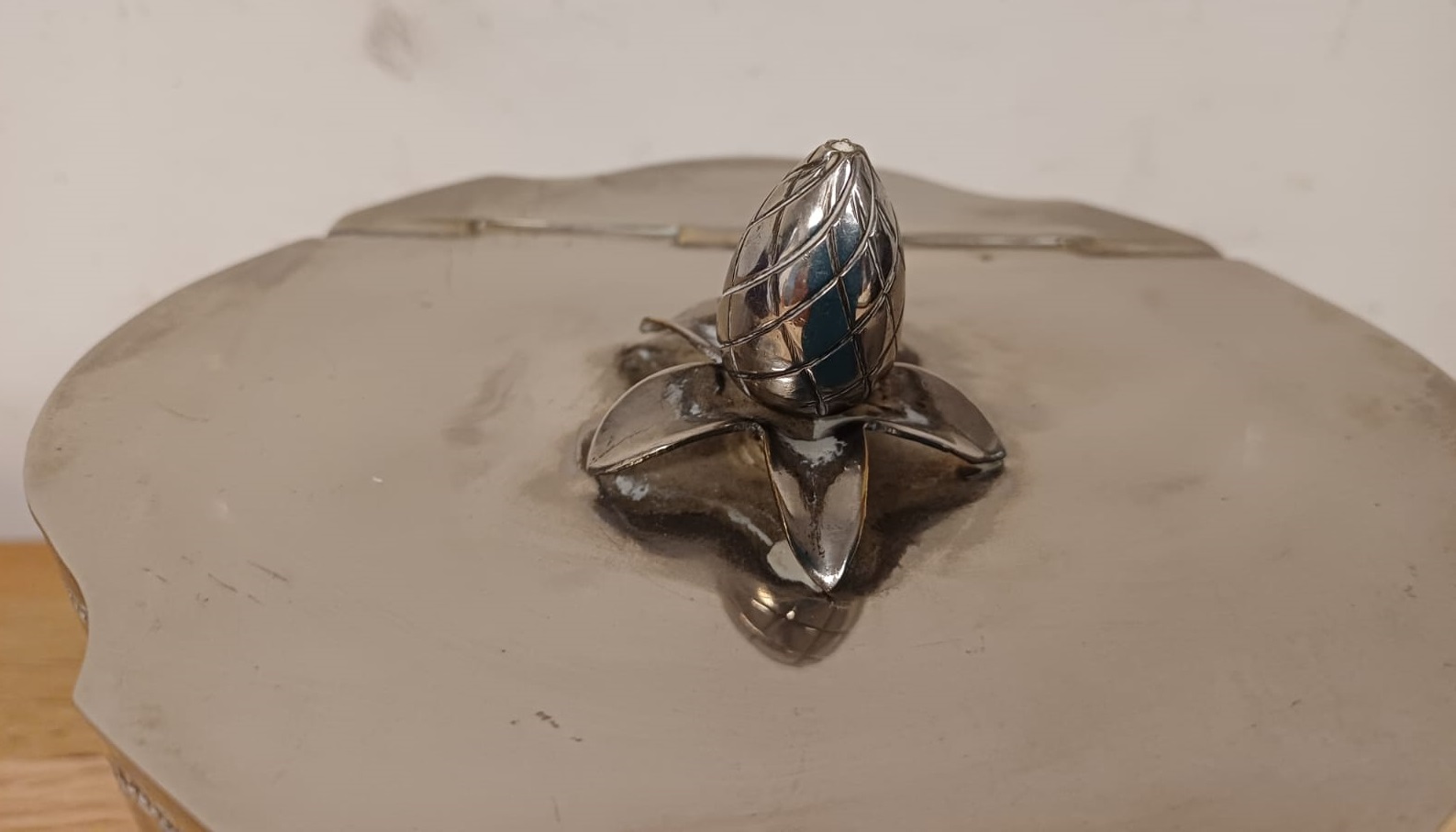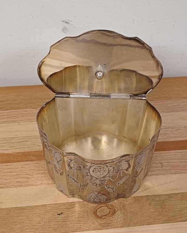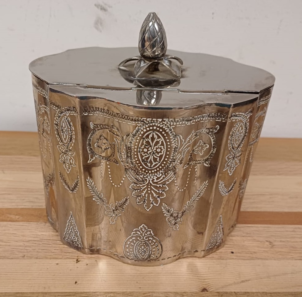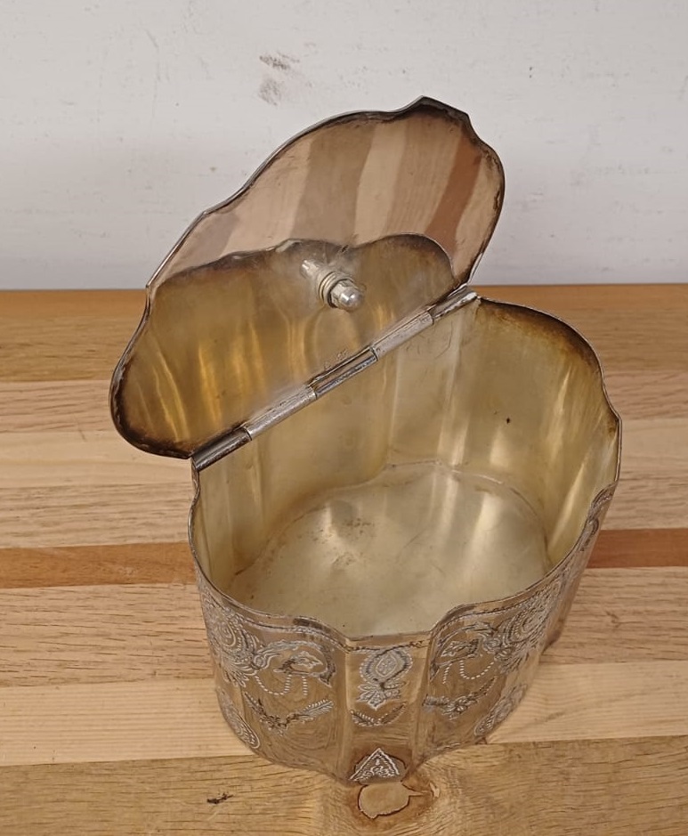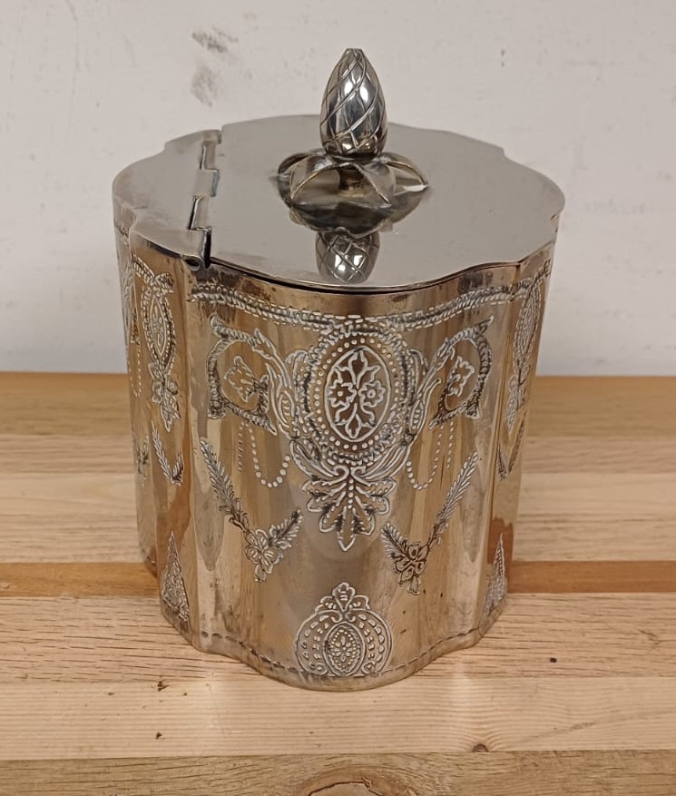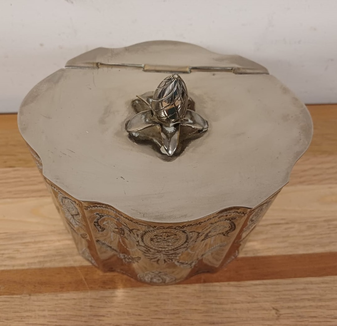 Victoriaanse verzilverde theebus met scharnierend deksel – 20e eeuw