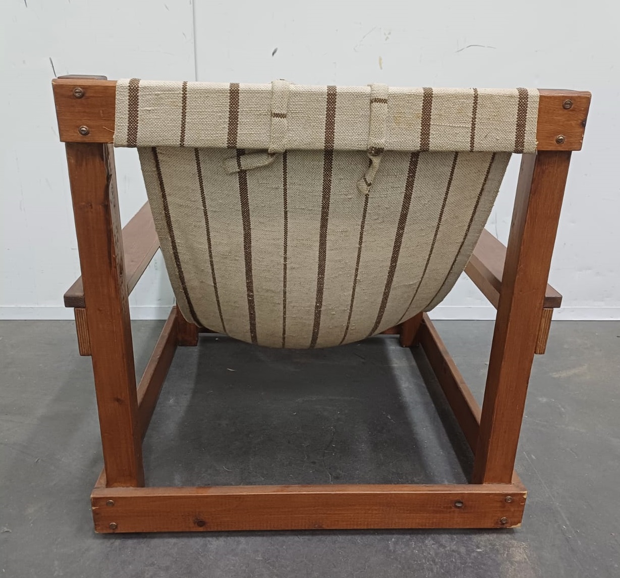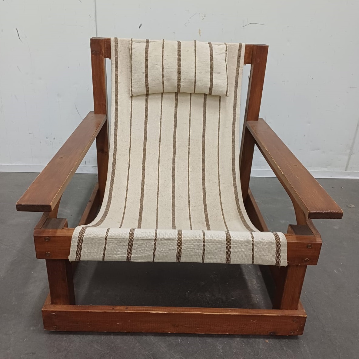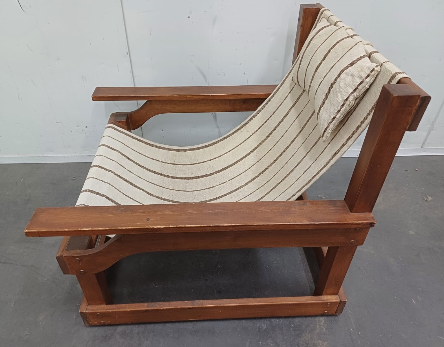 Vintage design armchair met canvas en origineel hoofdkussentje