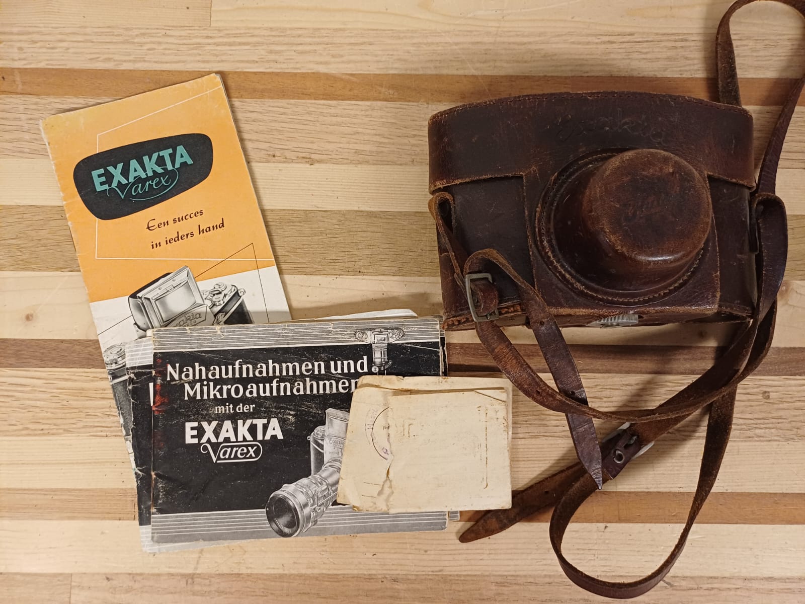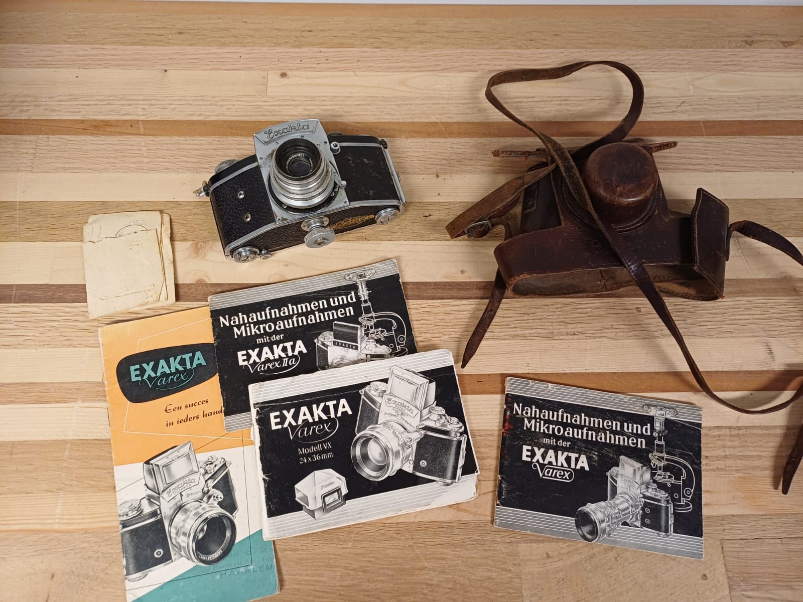Vintage filmcamera met hoes en handleiding