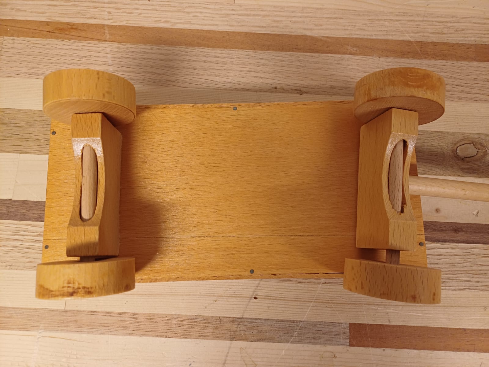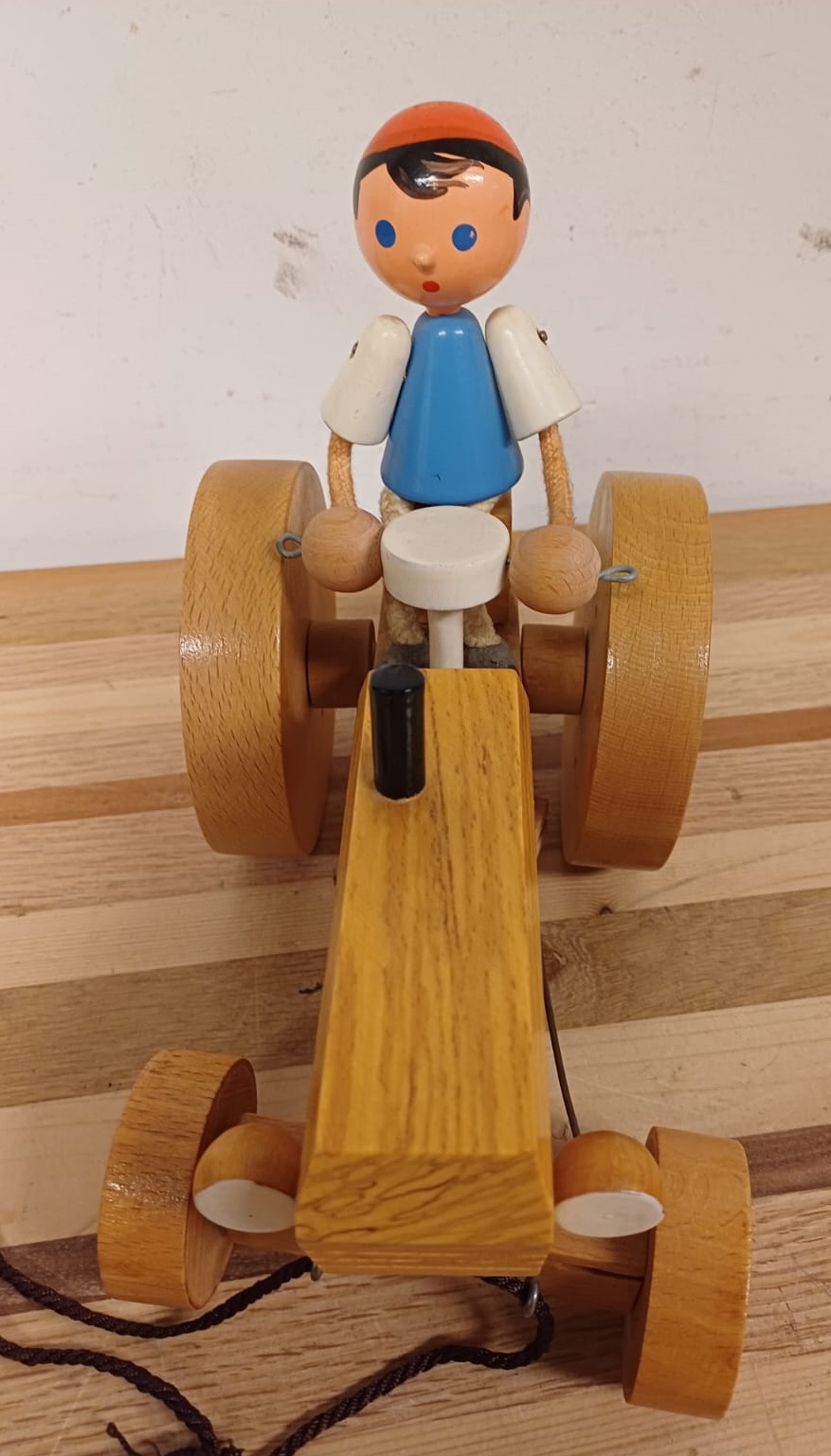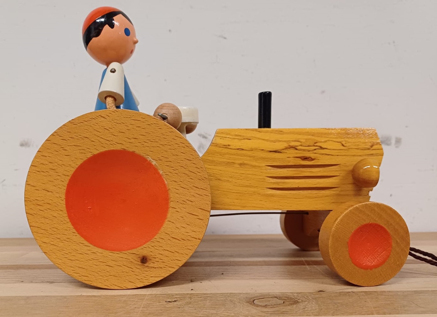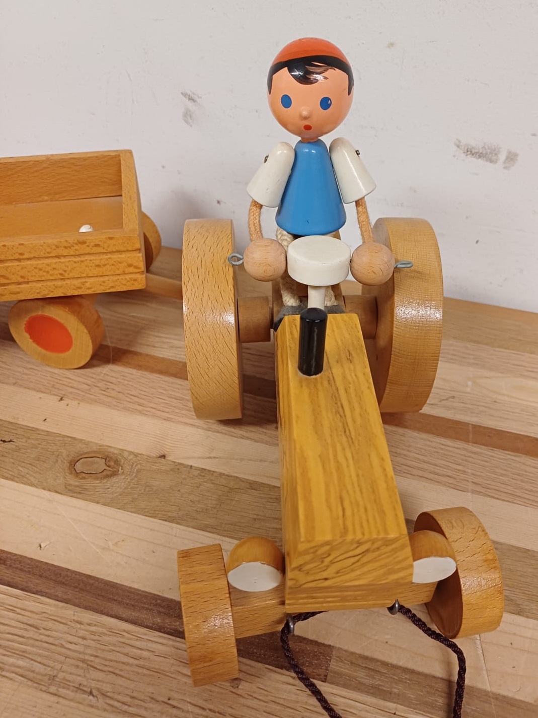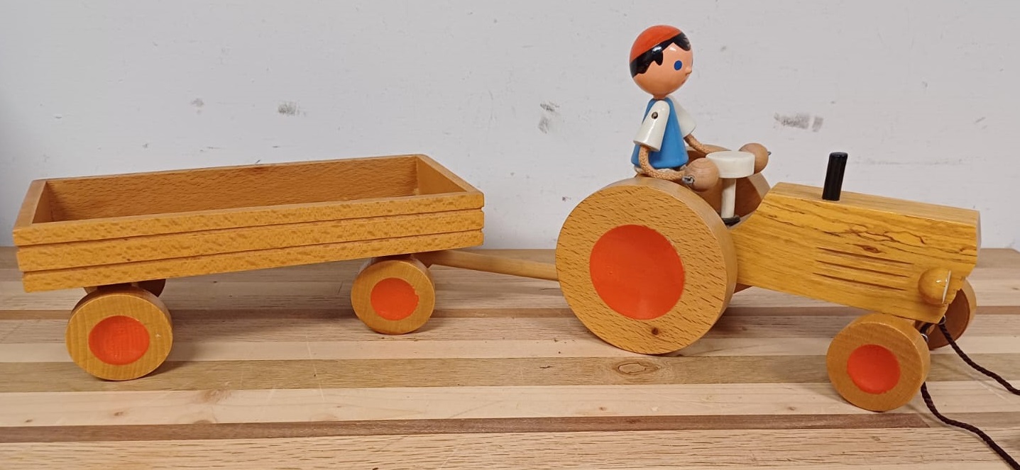Vintage handgemaakte houten tractor en aanhangwagen