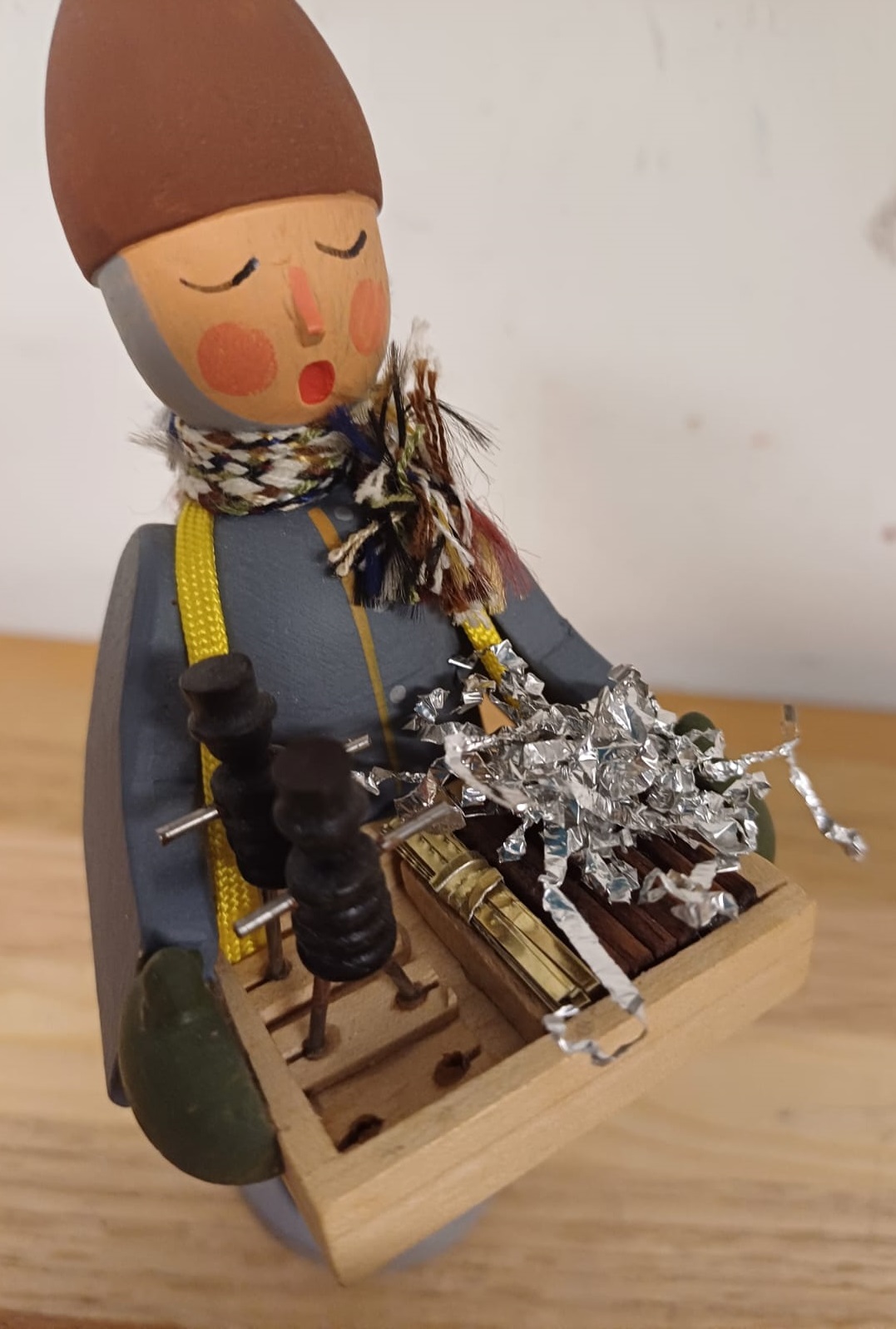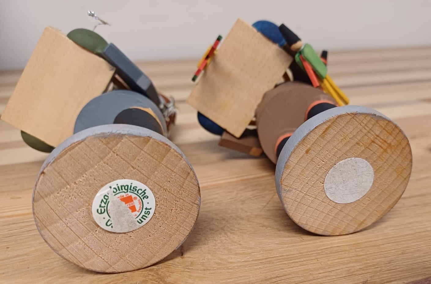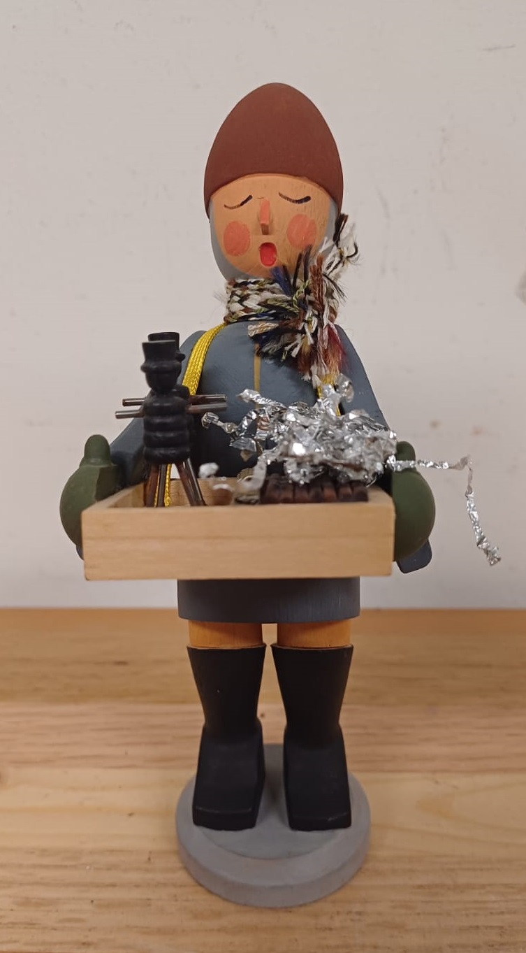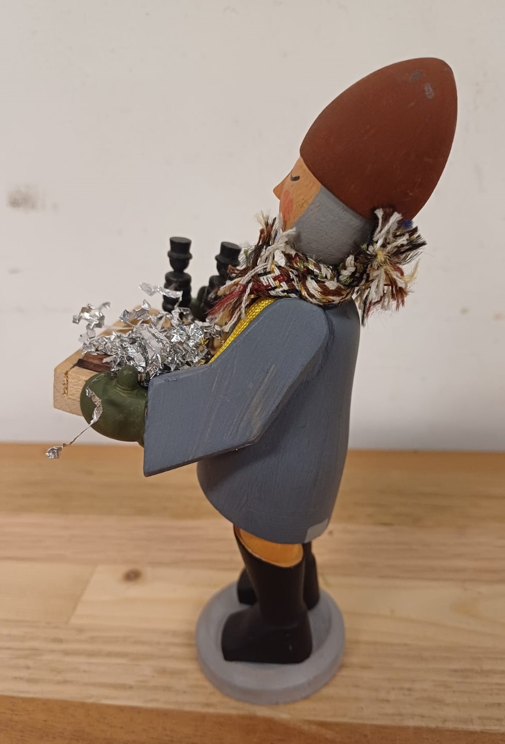 Erzgebirge Expert houten figuren gemaakt in DDR Duitsland. Uit de jaren 60. Beide zijn speelgoedhandelaren, compleet met een dienblad vol speelgoed/artikelen.