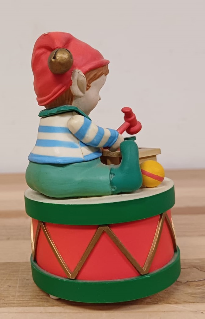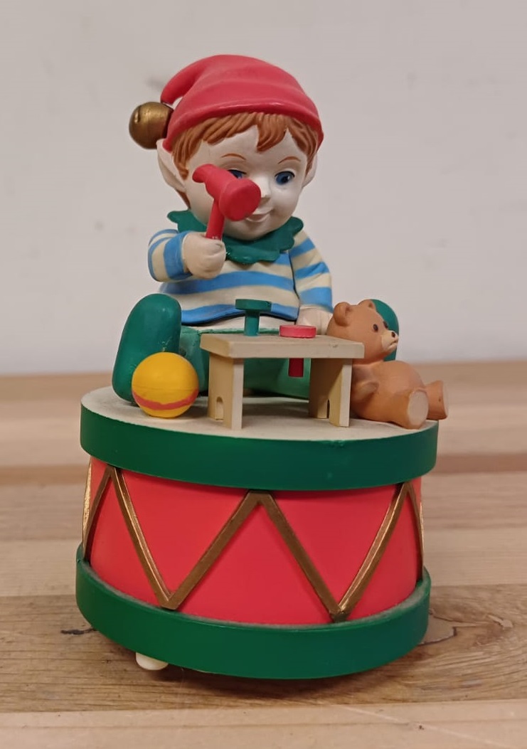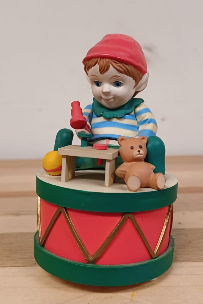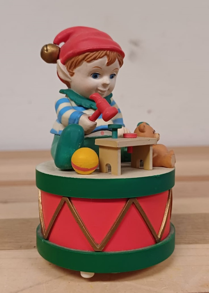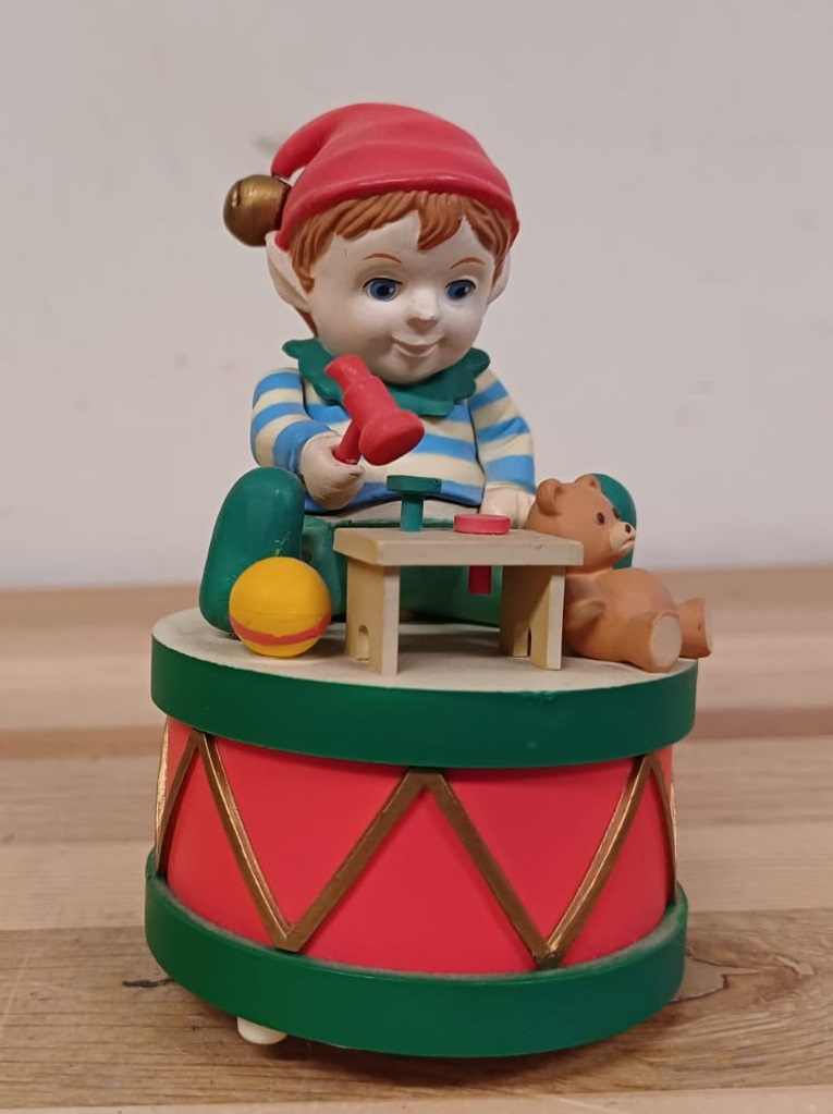 Vintage muziekdoosjeToyland1986Bij het afspelen klopt het elfje met de hamer