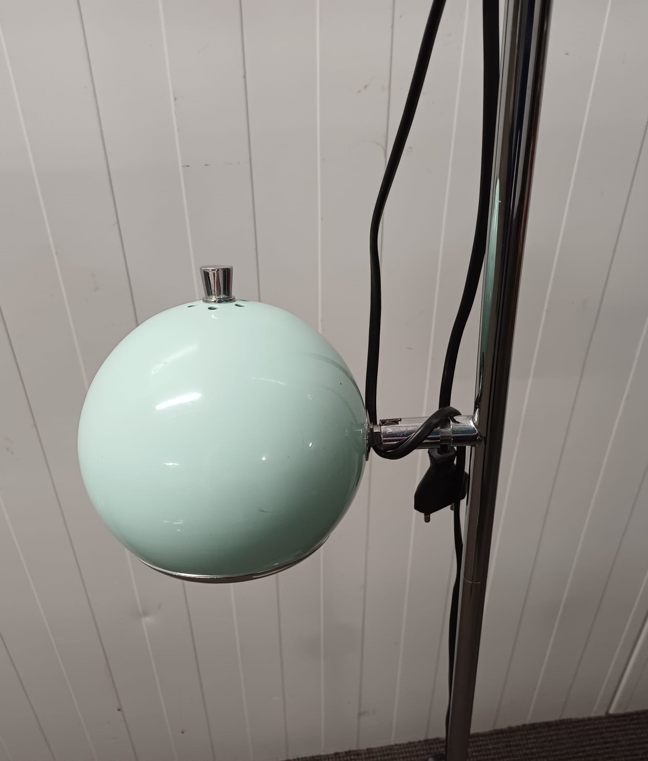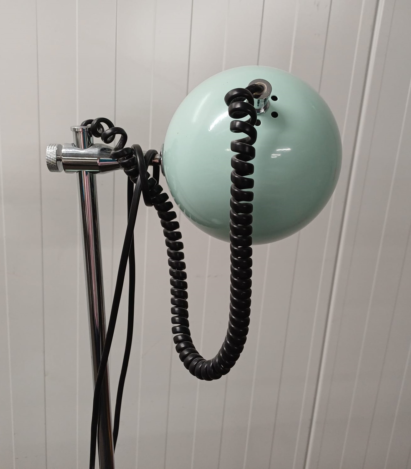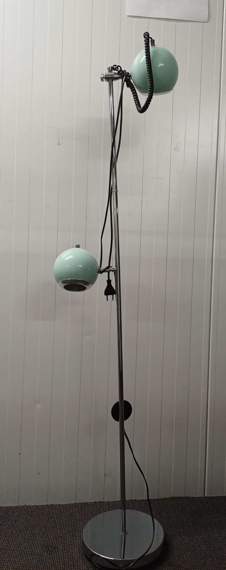 De retro vloerlamp van past prima bij het interieur. Met 2 bollen waarvan er eentje te draaien is, is deze lamp erg geschikt om als leeslamp te gebruiken.