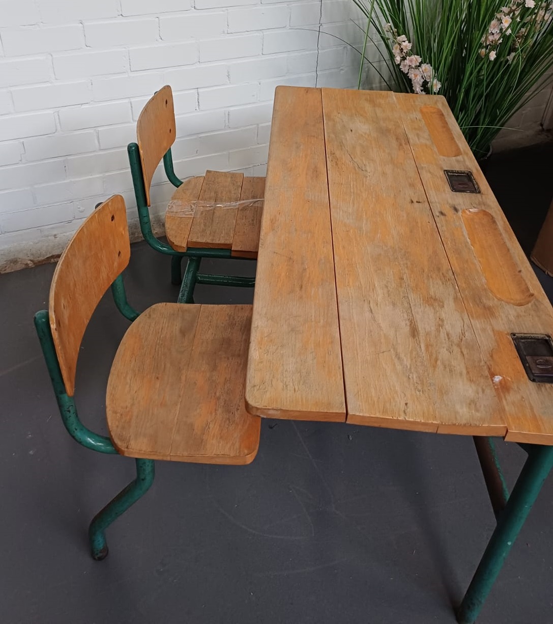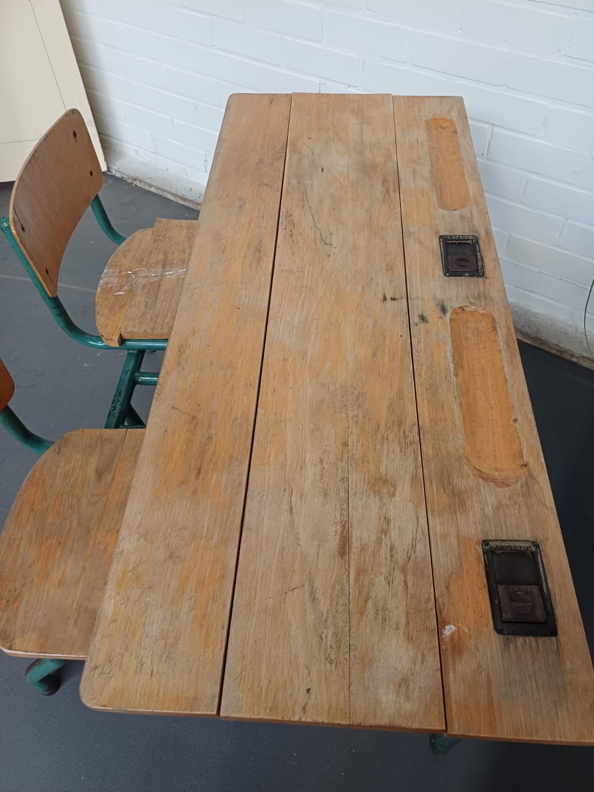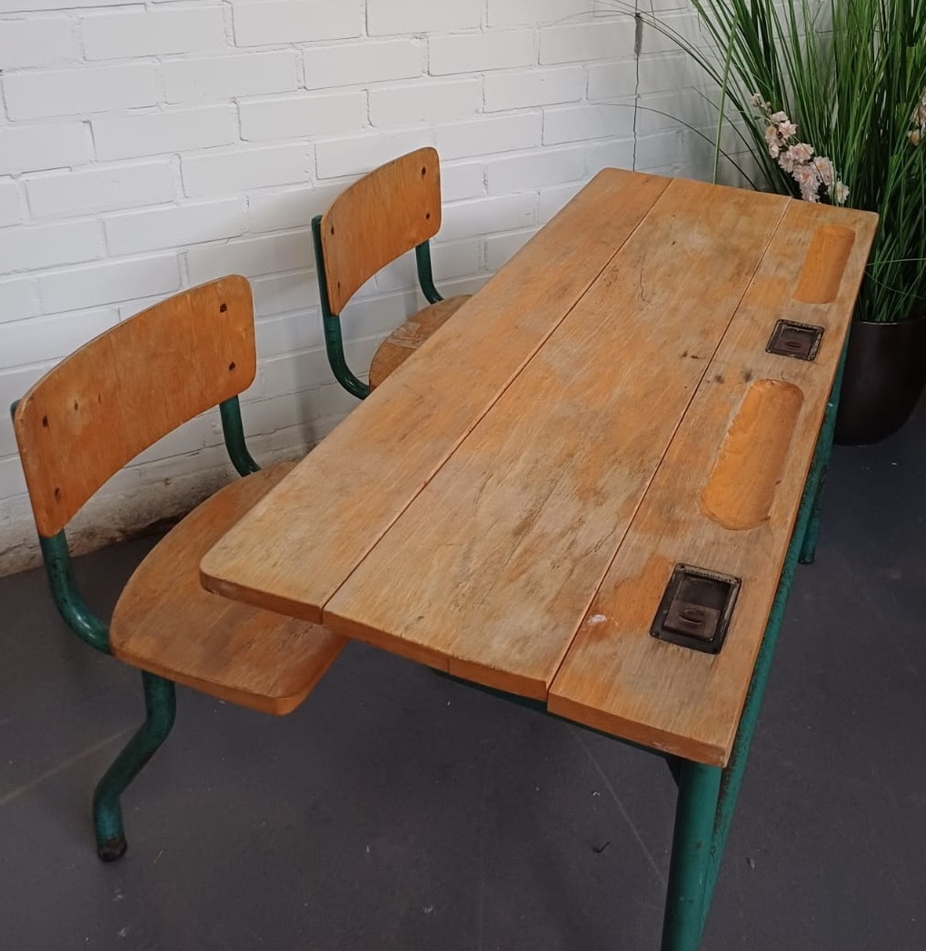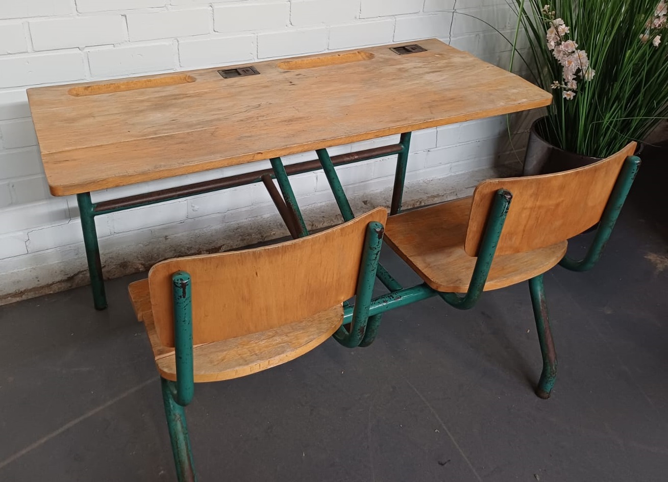 Vintage Schoolbank duo kinder tafel – dubbel
