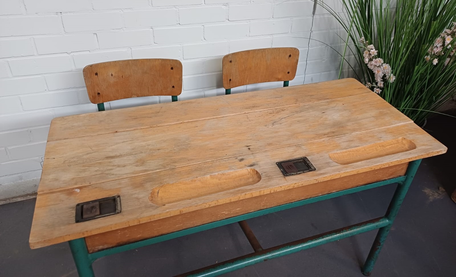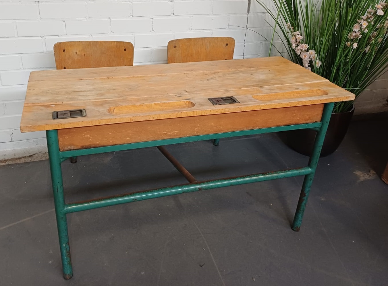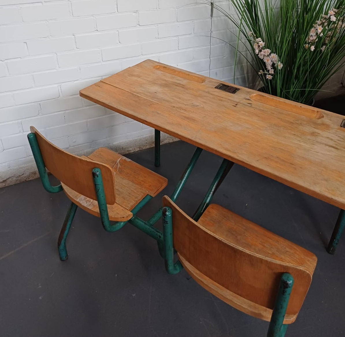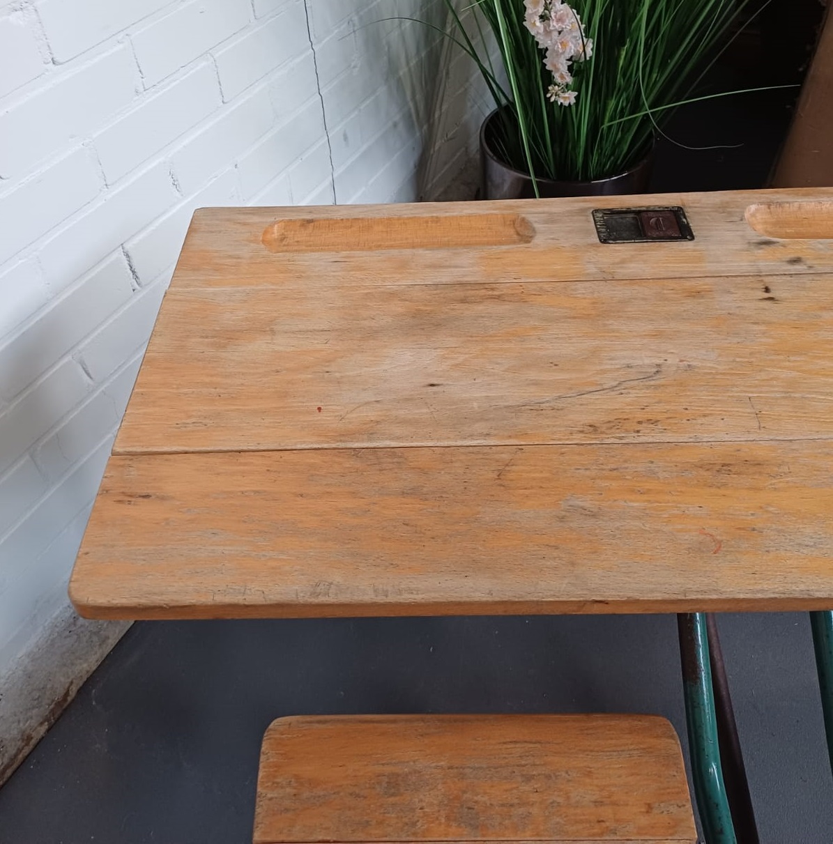 Vintage Schoolbank duo kinder tafel – dubbel