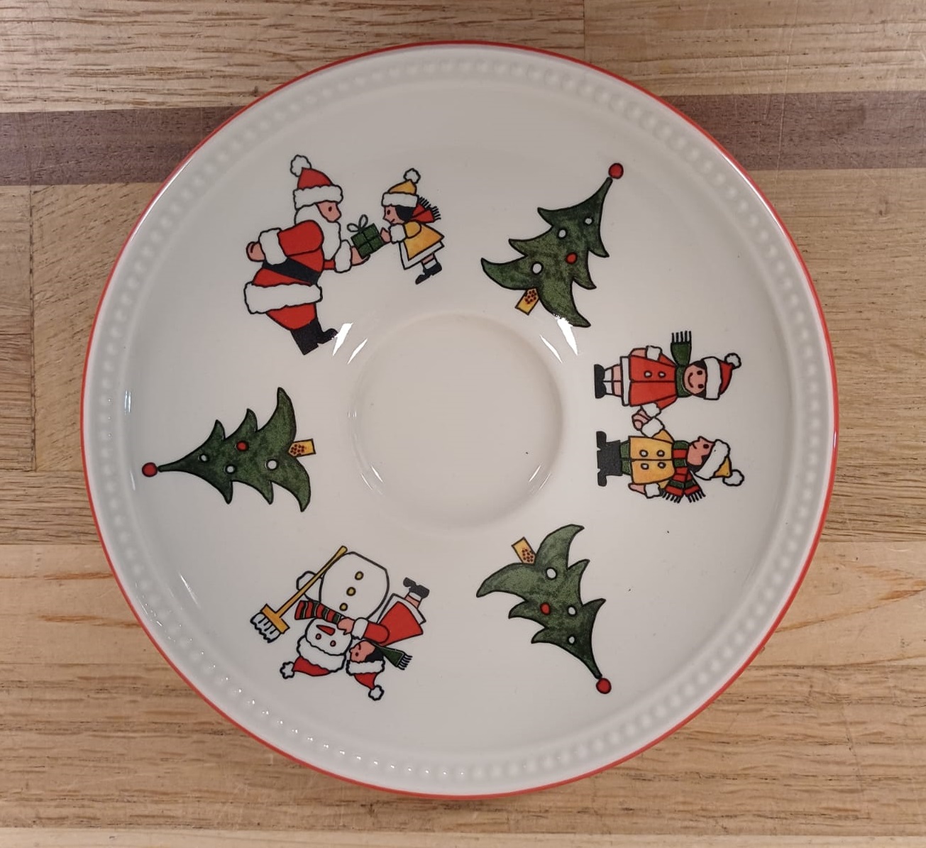 Bestaande uit: 1 ontbijtbord – doorsnede: 21,5 cm 1 schotel – doorsnede: 14,5 cm 2 kopjes – doorsnede: 7,5 cm / hoog: 7,5 cm