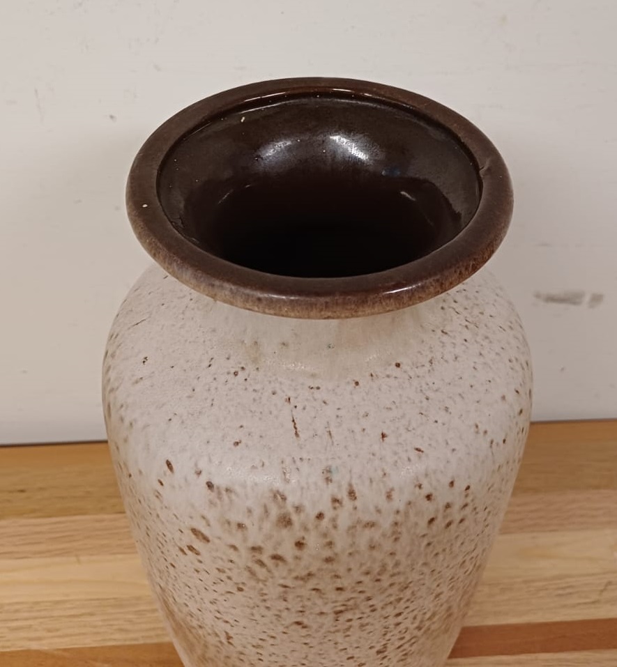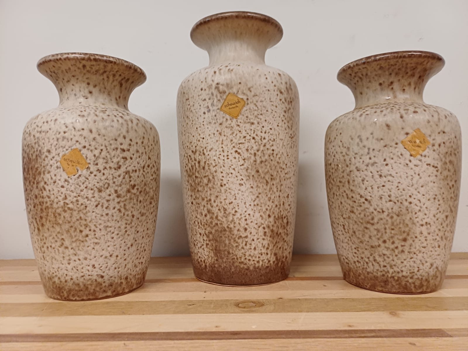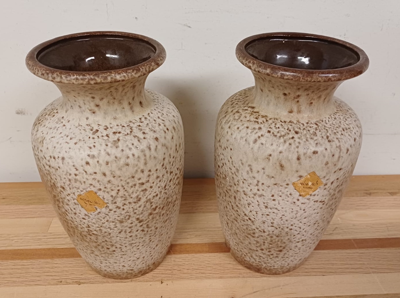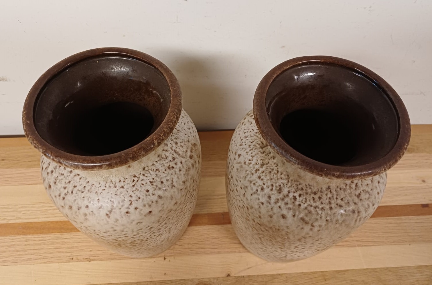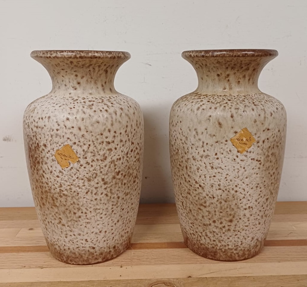 Vintage taupe gespikkelde West Germany vazen Scheurich. Deze vintage vazen zijn afkomstig uit een set van een heel lief verzamelaars stel. Prachtig om te combineren met een andere vintage West Germany vaas.