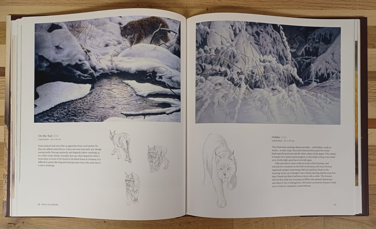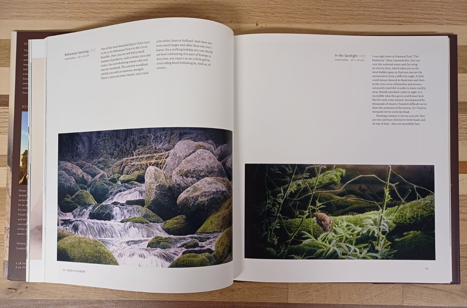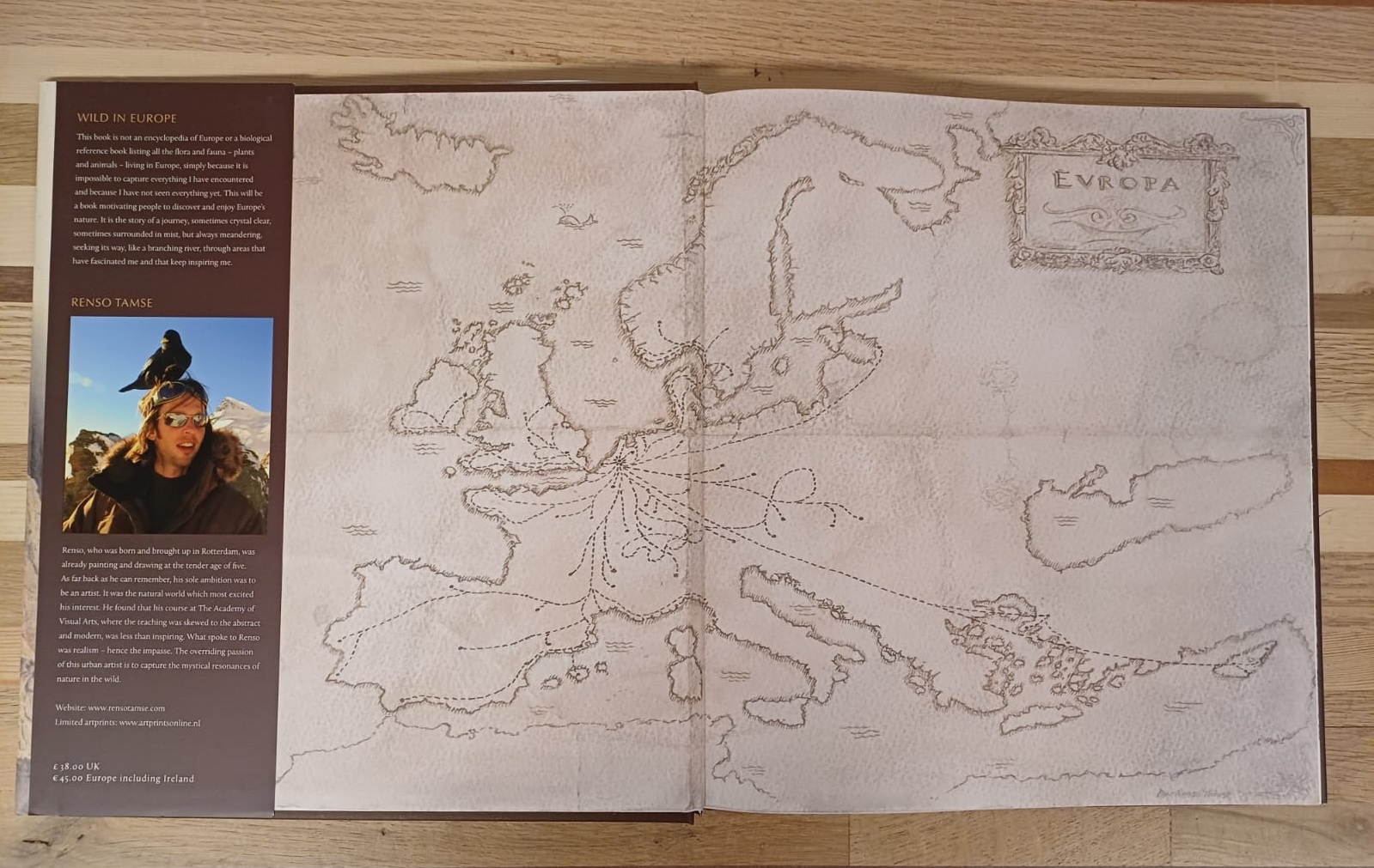 Groot formaat boek van wildlife kunstenaar Renso Tamse. Renso is een meester in aquarel. Dit boek is een collectie schilderijen en schetsen van zijn wildlife dierenontmoetingen ‘op reis’ door Europa. Met meer dan 70 grote afbeeldingen van schilderijen en 90 tekeningen en studies. Hij vertelt over zijn materialen, inspiratie en avonturen. Diersoorten zijn onder andere vogels en zoogdieren, van knobbelzwaan tot bruine beer, van roofvogels tot marterachtigen. Allen in hun geheimzinnige leefomgeving verbeeld.