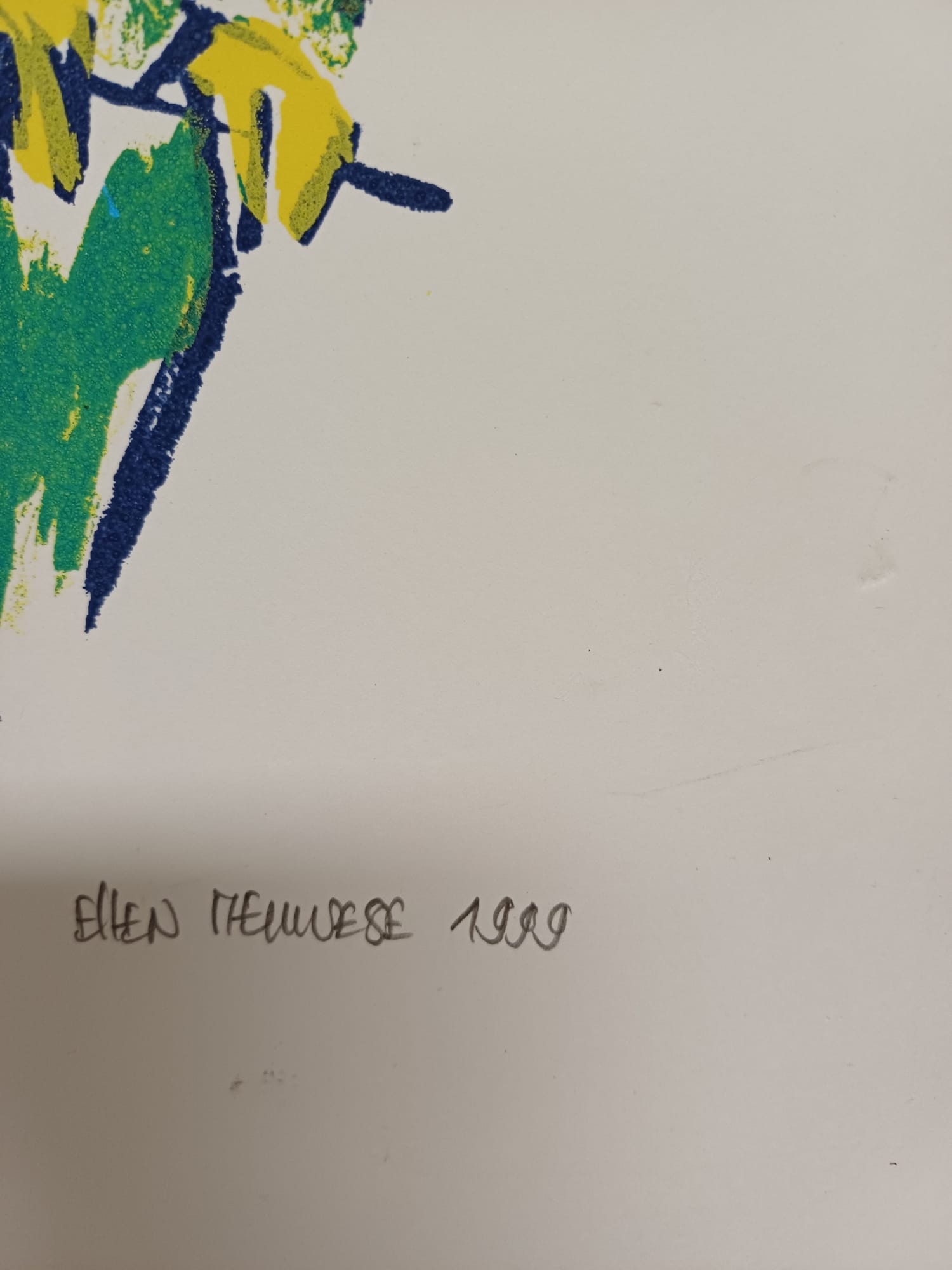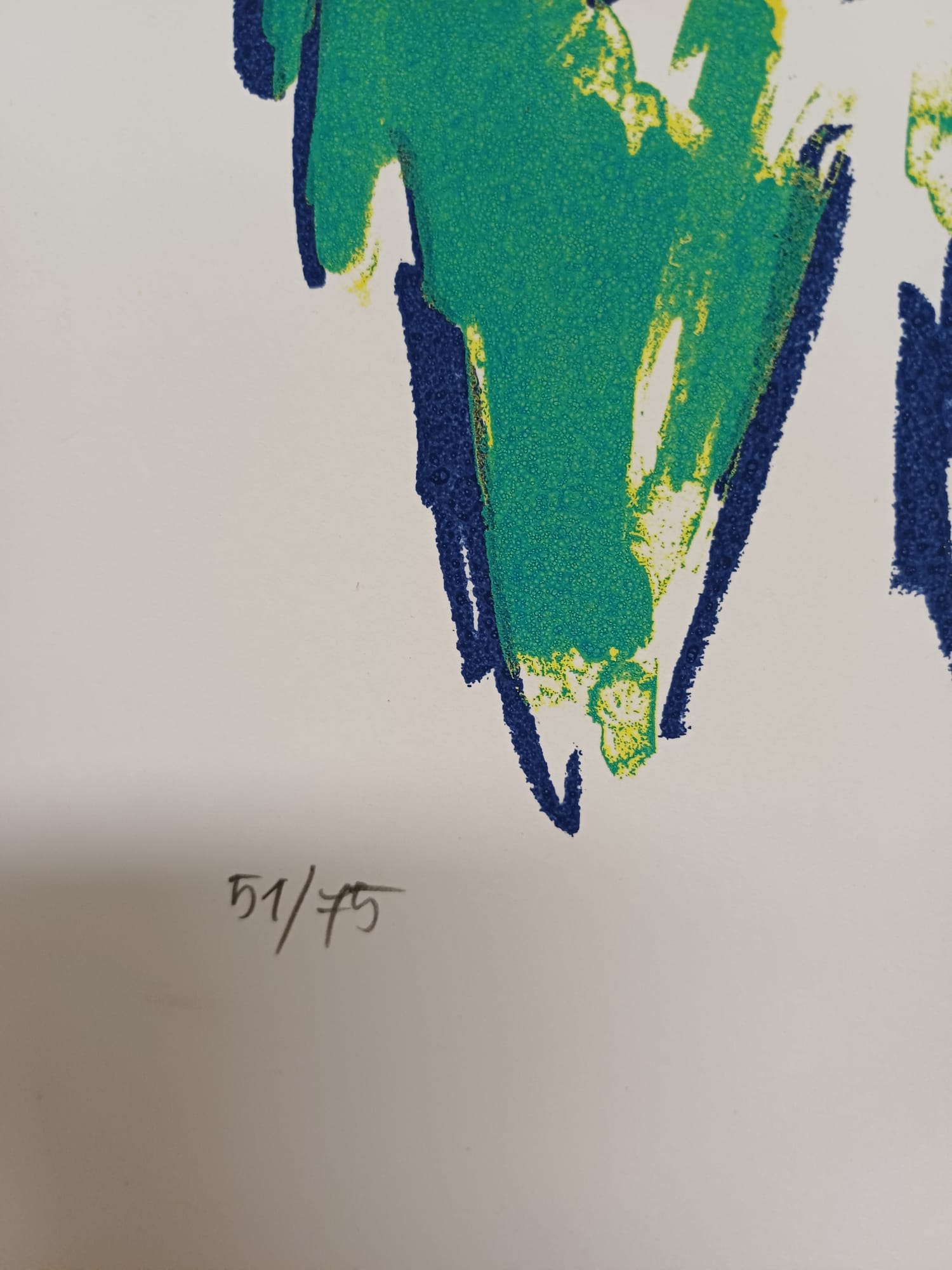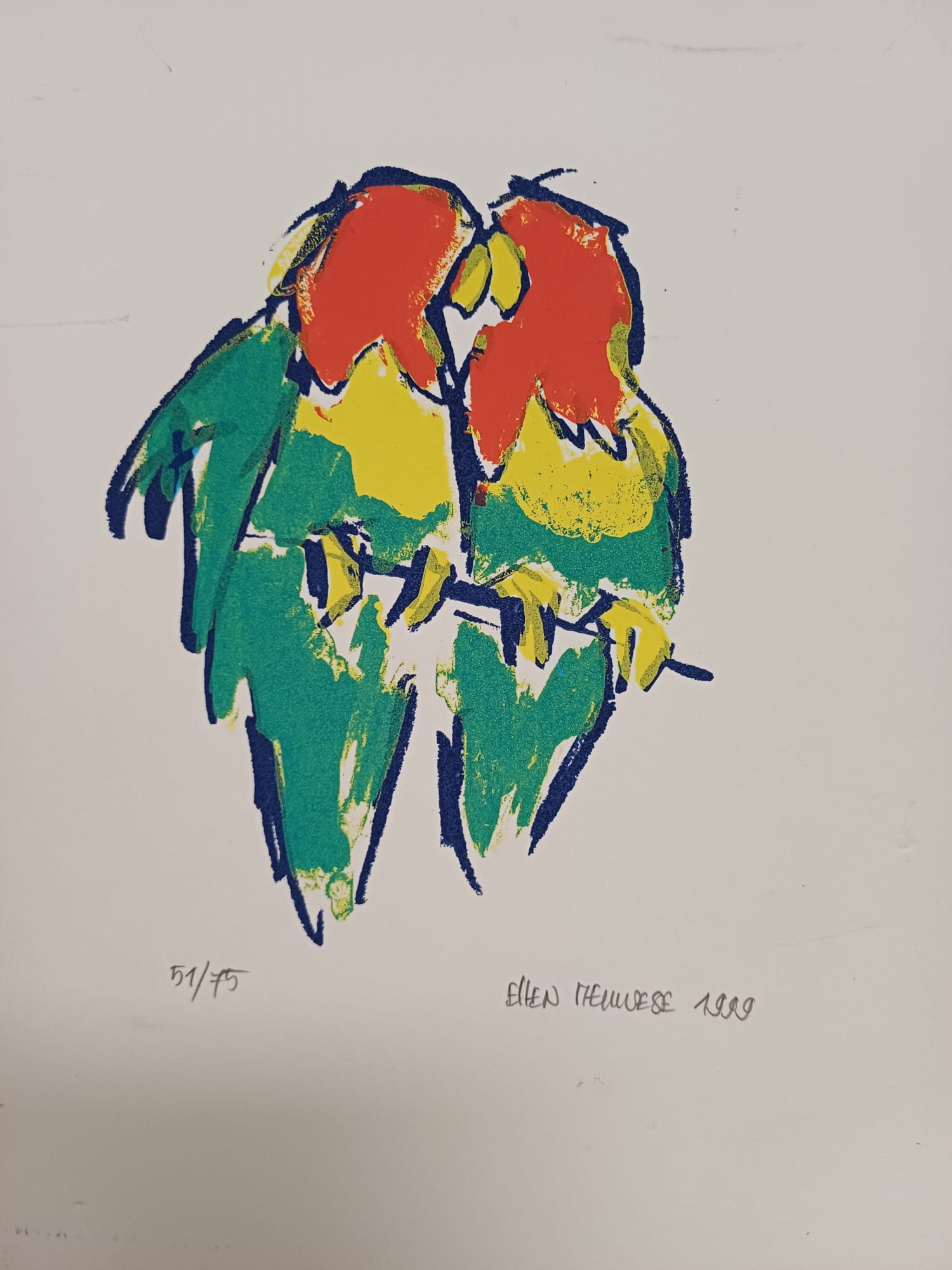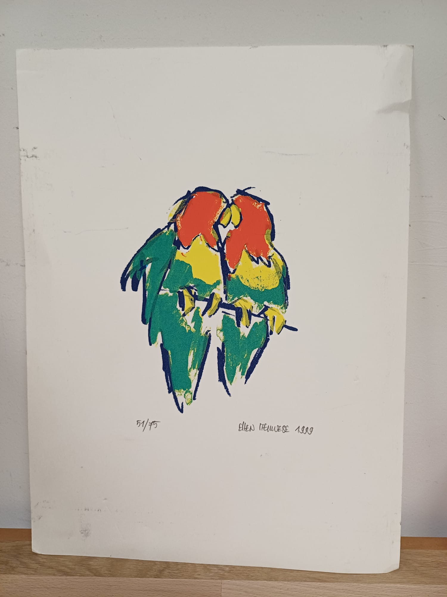 Zeefdruk Ellen Meuwese – PapegaaienGesigneerd en genummerd (51/75).Jaartal 1999